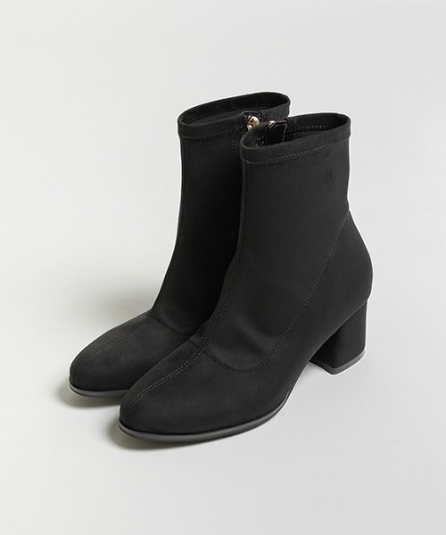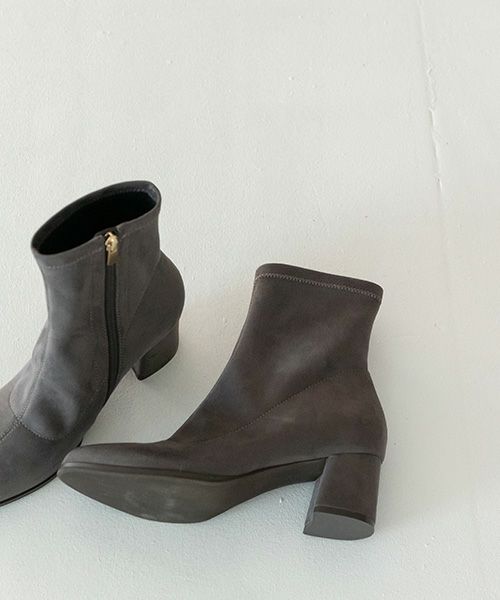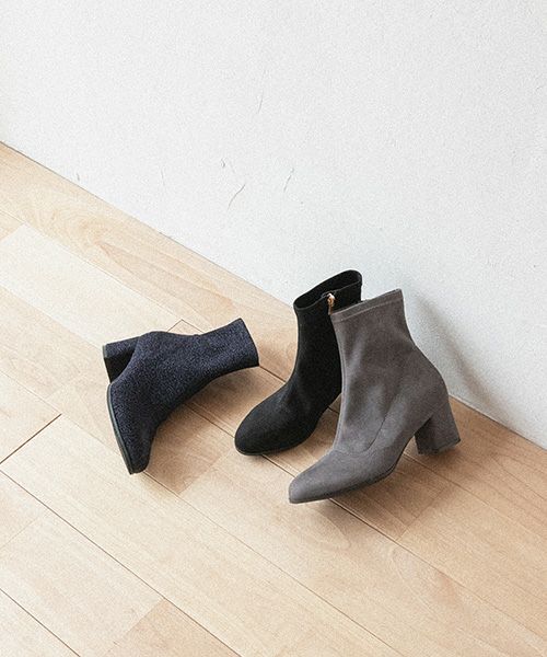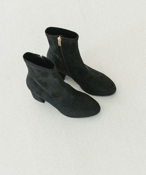 細めのラウンドトゥで脚に沿うラインがきれいなショートブーツです。
