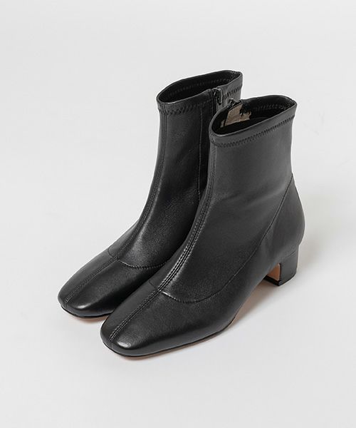 ストレッチレザーを使用した足当たりの良いショートブーツ。
