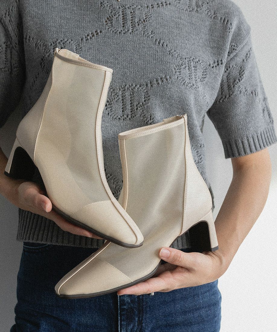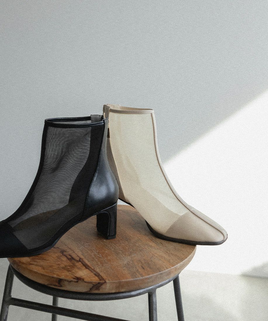 軽さを出したい春夏の足元におすすめのシアーショートブーツです。