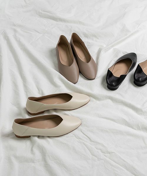 ソフトレザーを使用した足馴染みの良いフラットパンプス