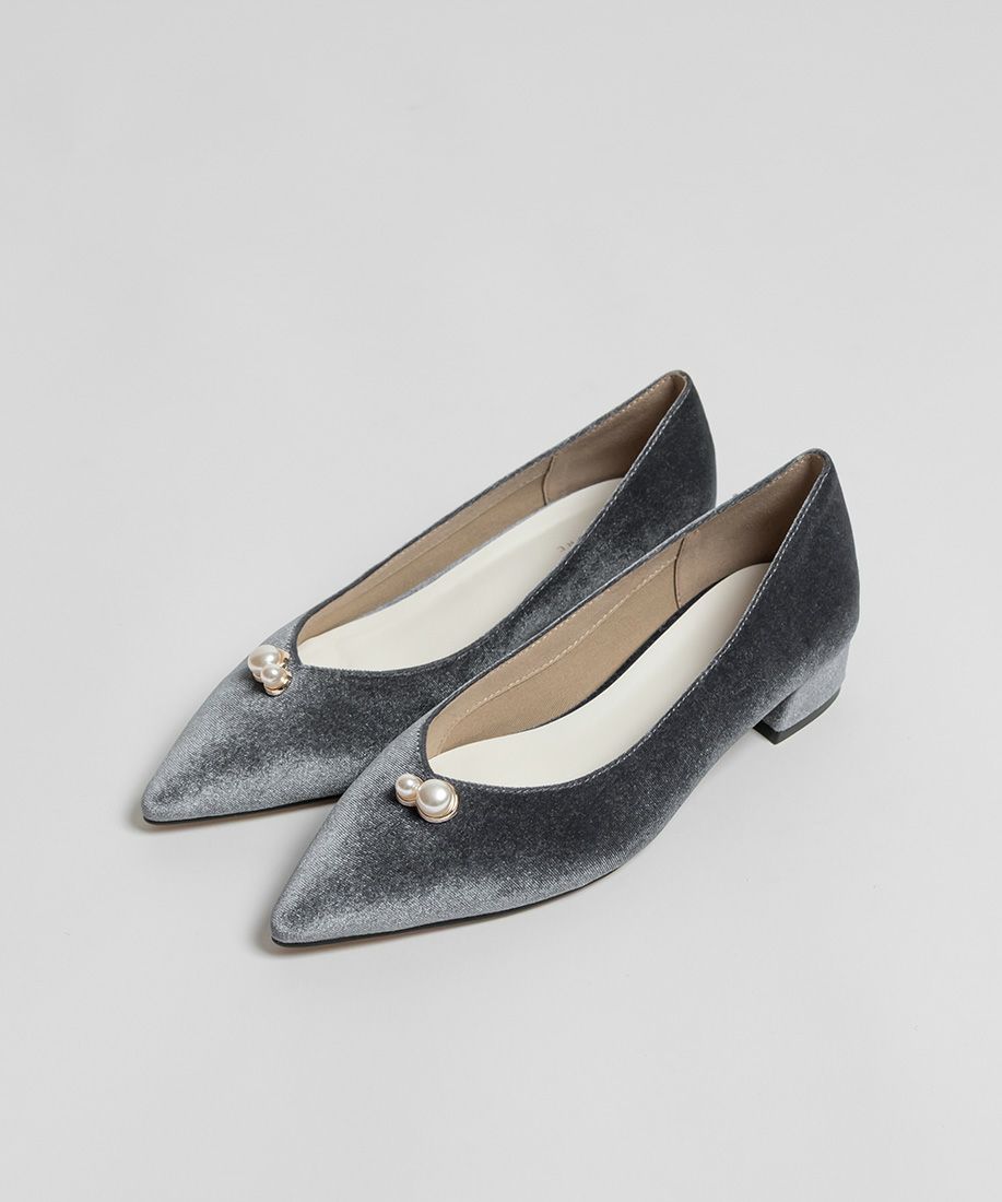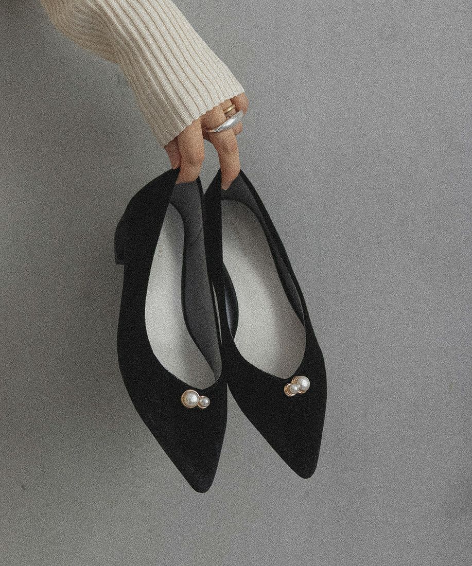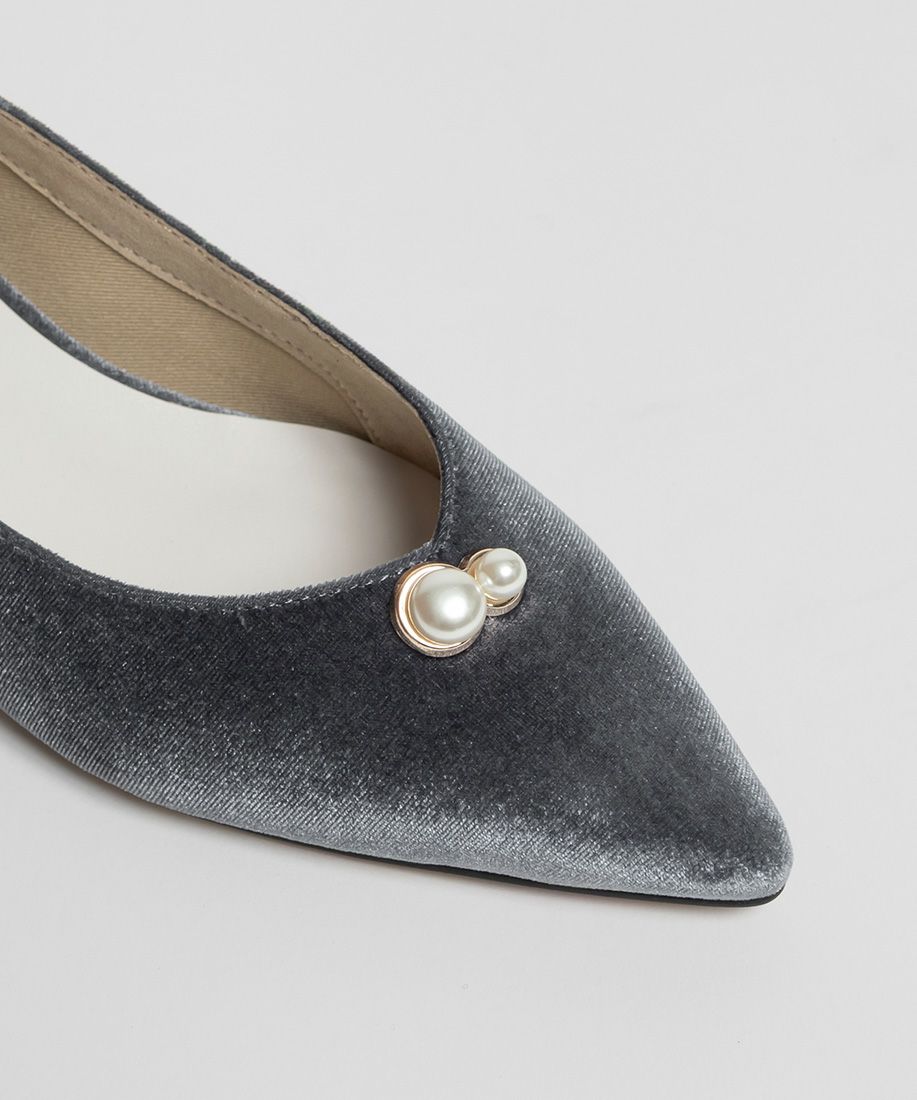 繊細なパールパーツがポイントのVカットパンプス。