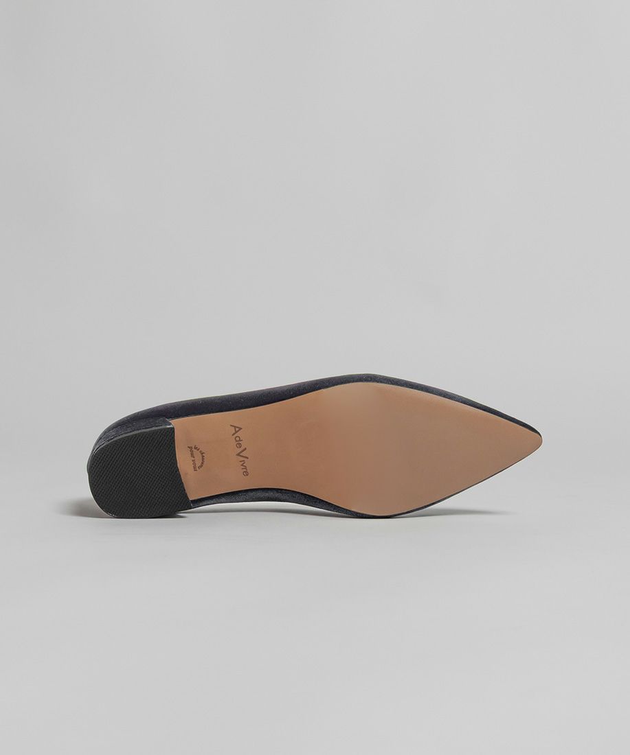足にしっかりフィットする仕様にこだわり、やや光沢のあるベロア素材がエレガンスな雰囲気に仕上げています。