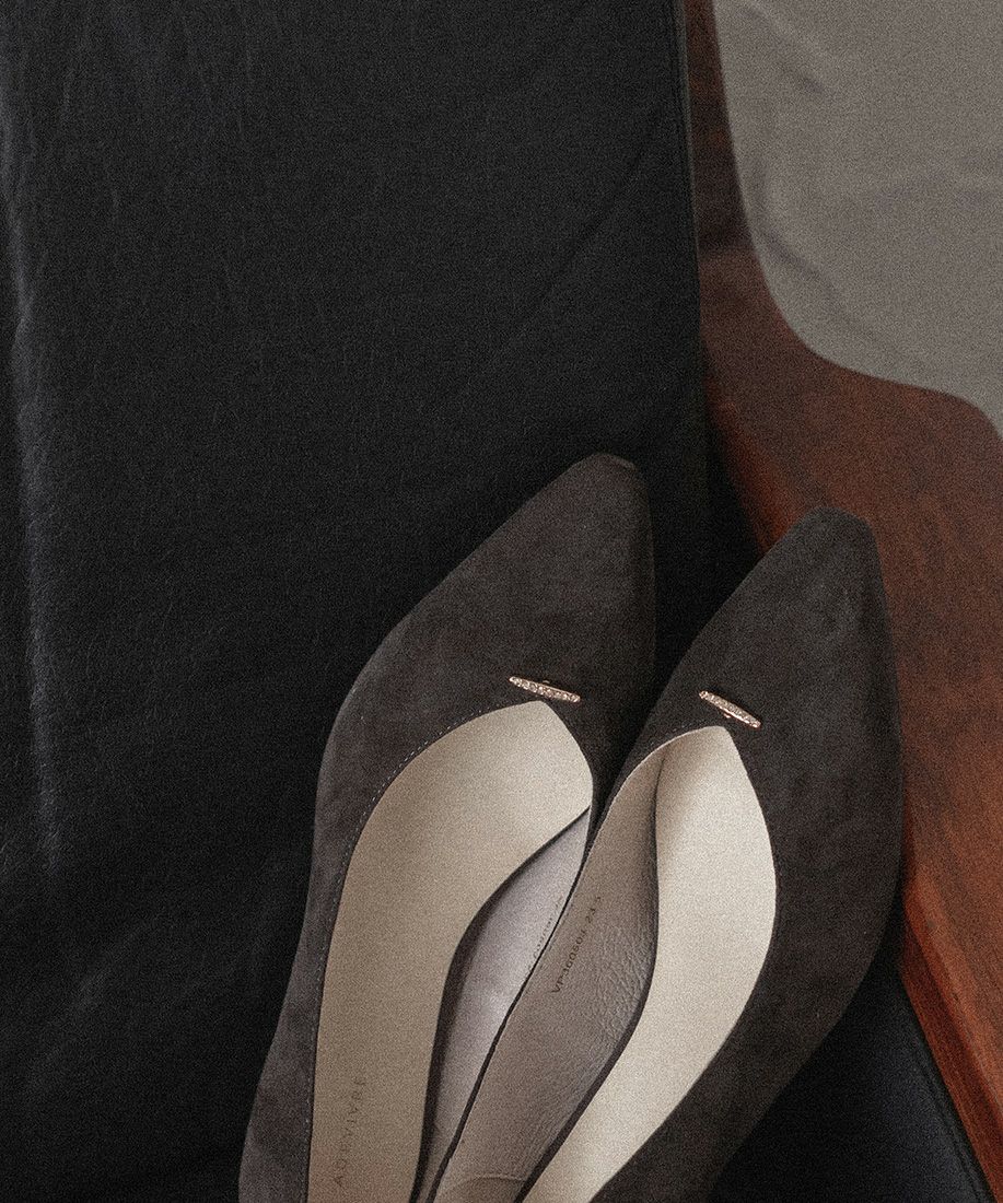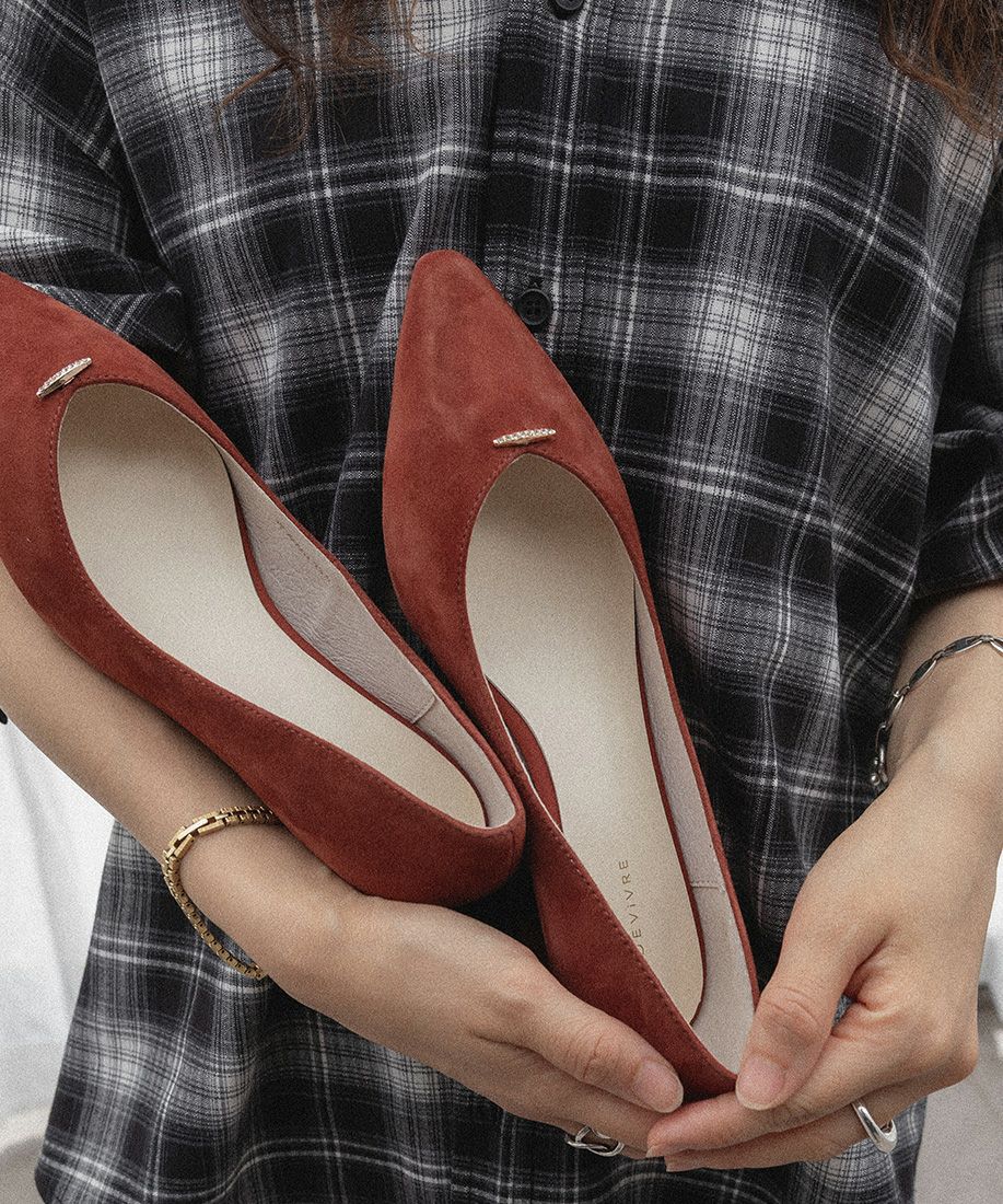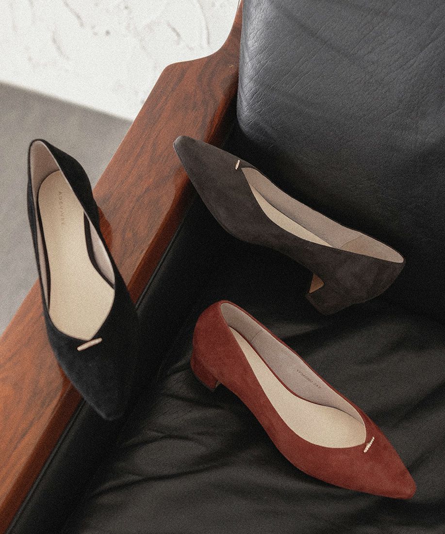 レザー ビジューバースエードパンプス