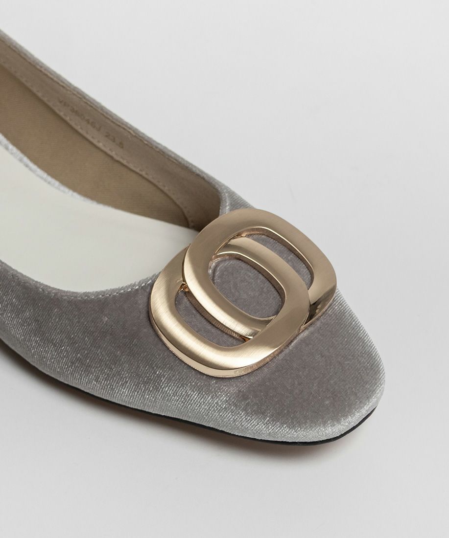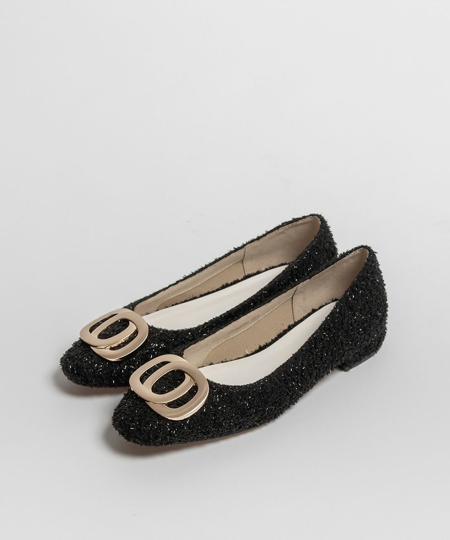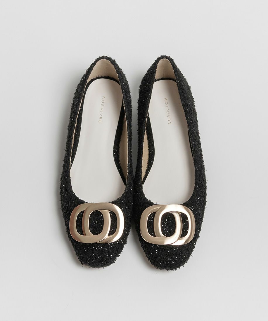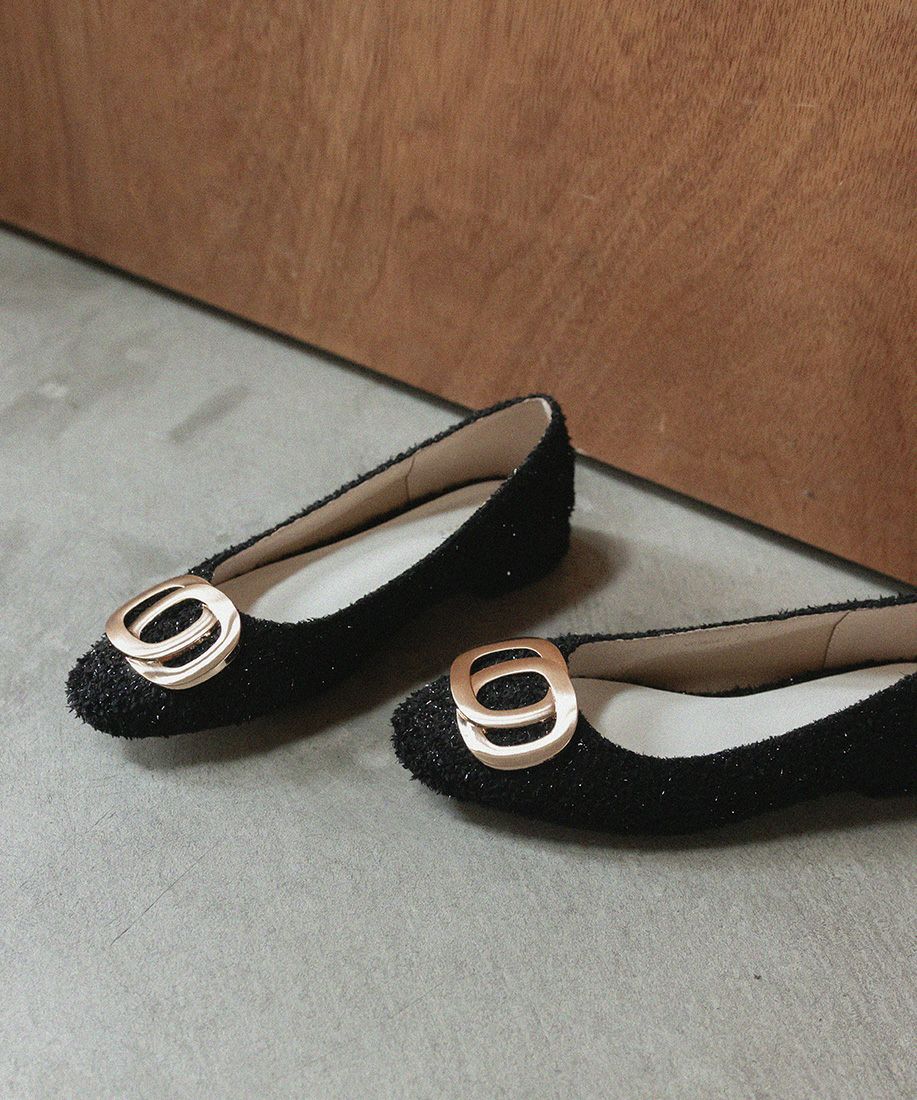 サステナブル ゴールドバックルフラットパンプス