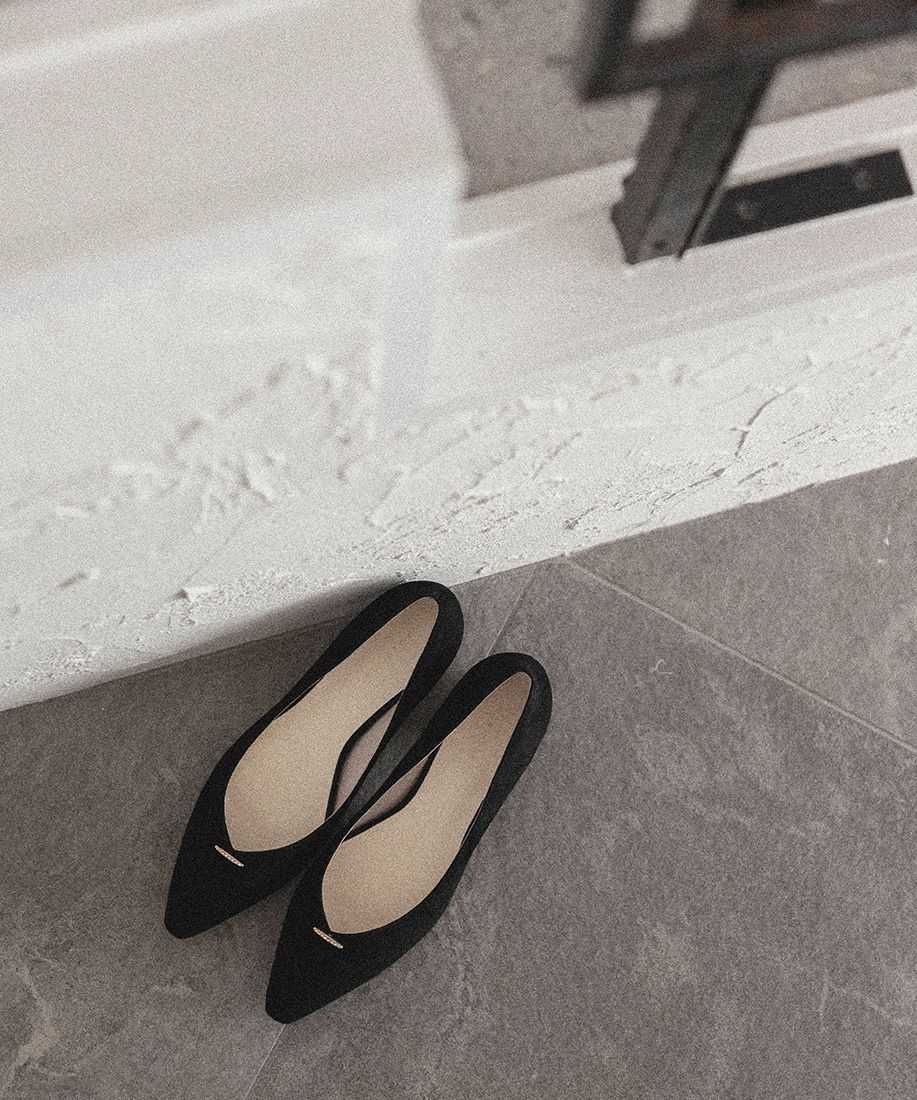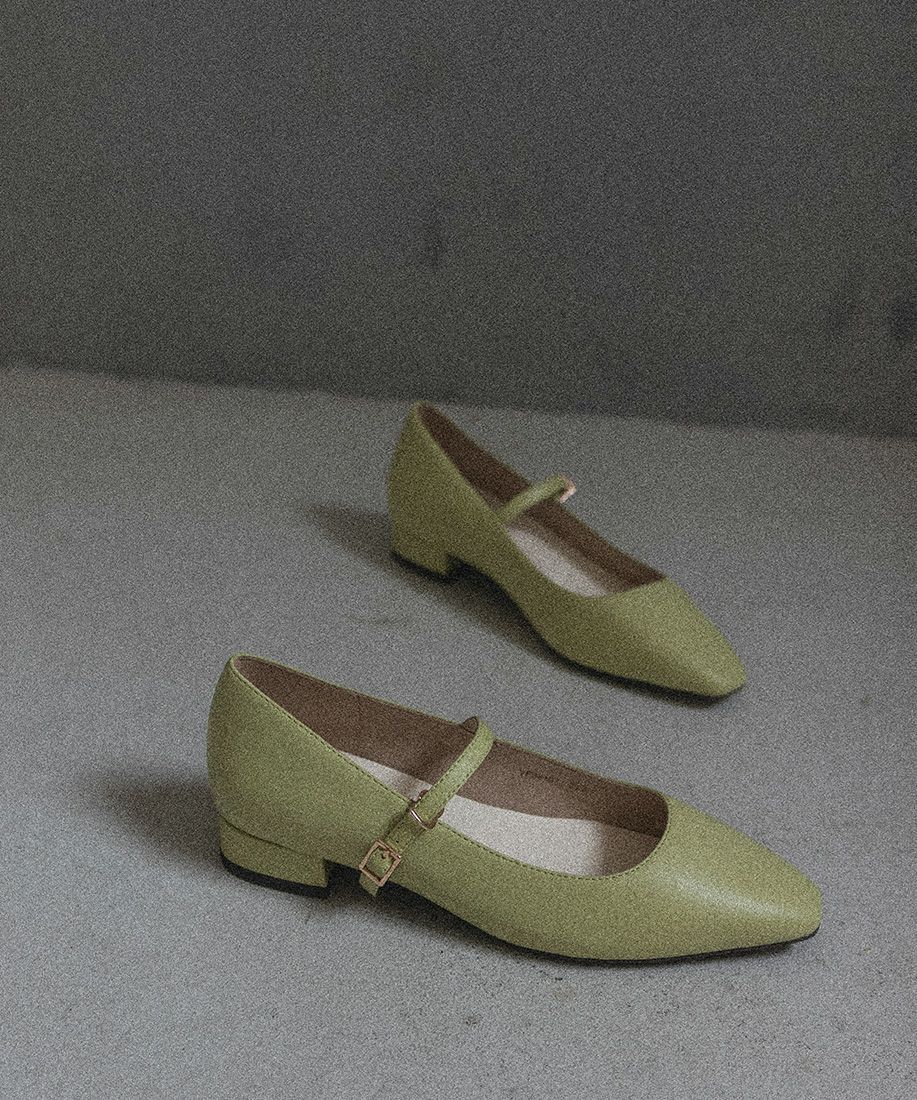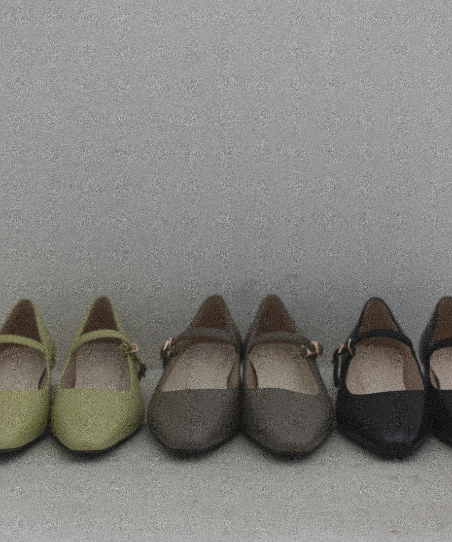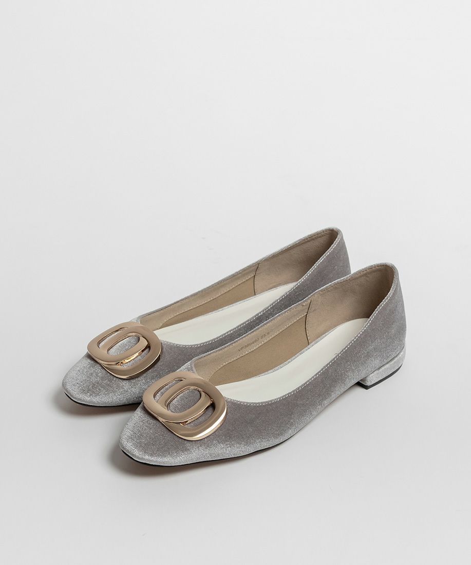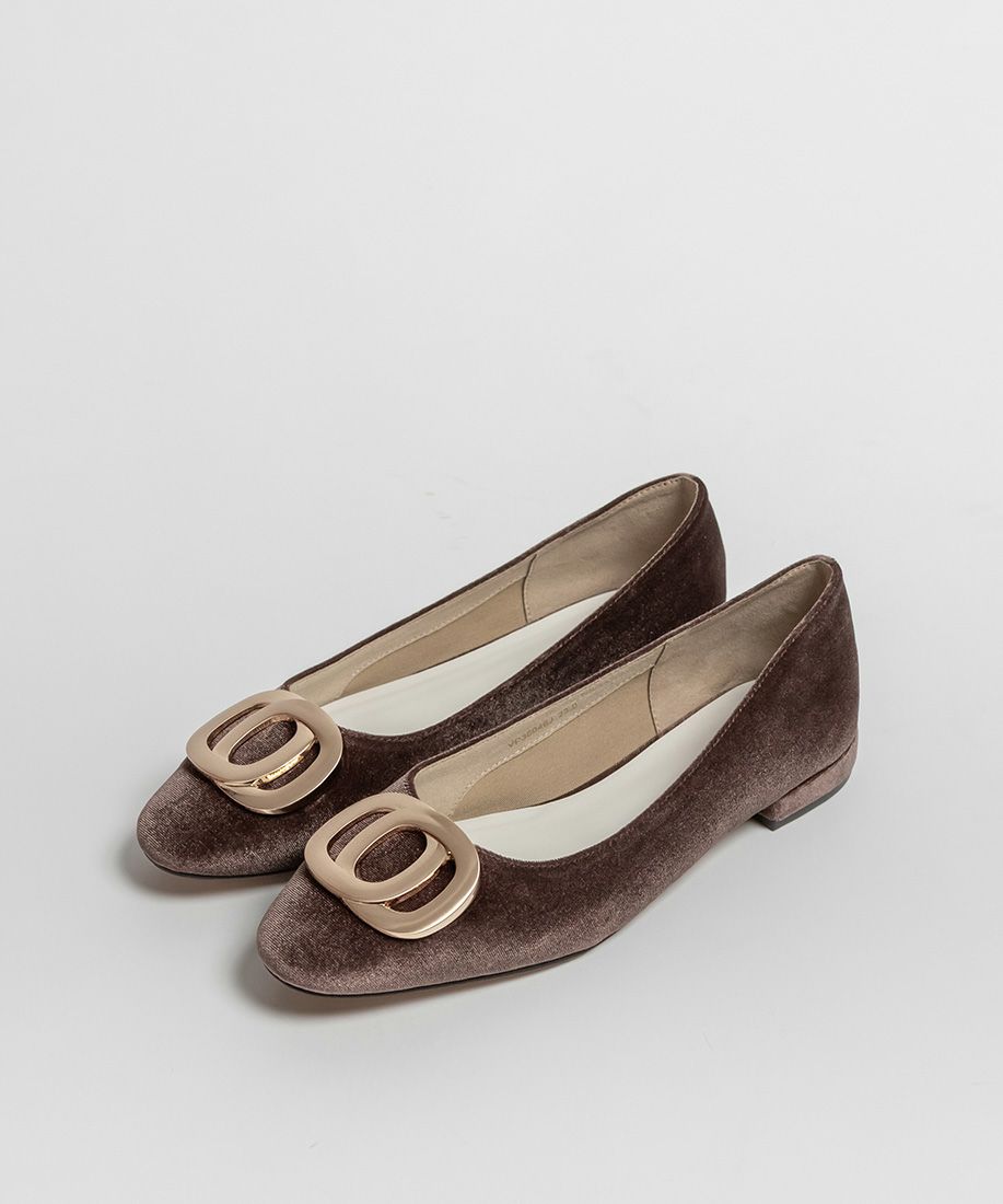 サステナブル ゴールドバックルフラットパンプス