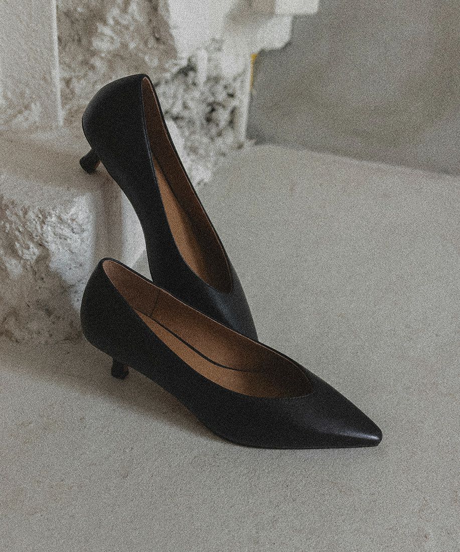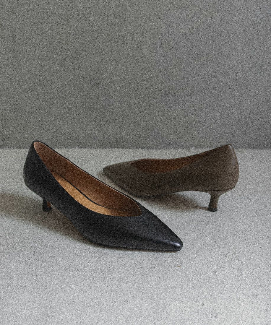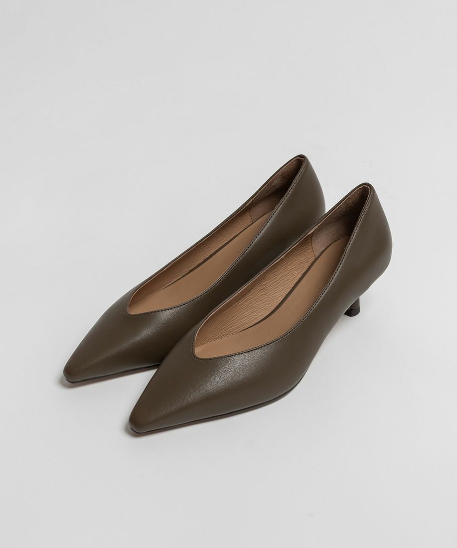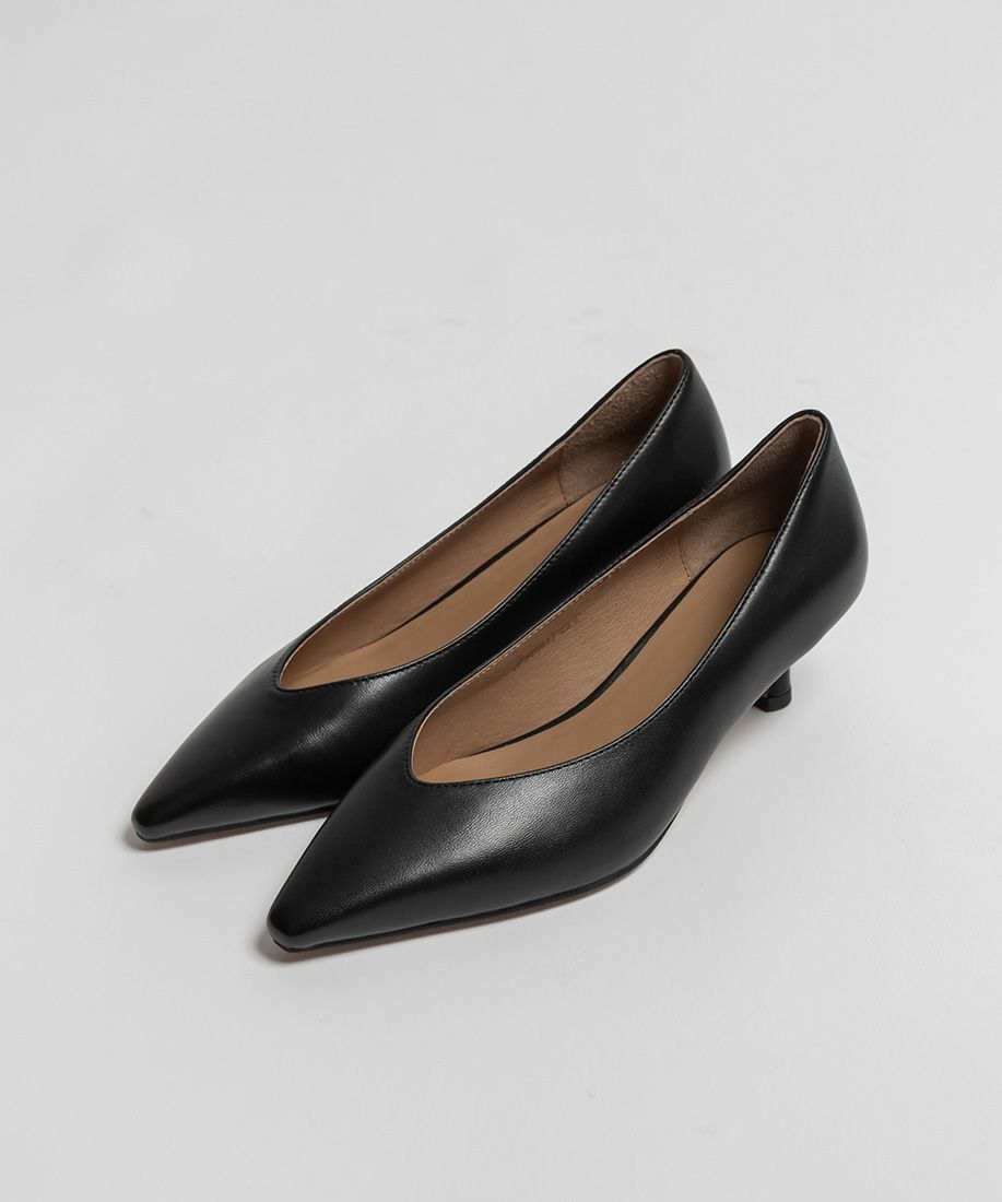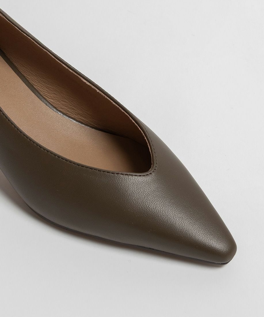 レザー ナロースクエアトゥパンプス