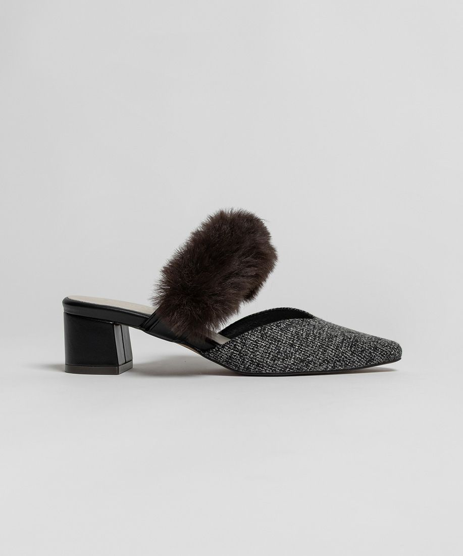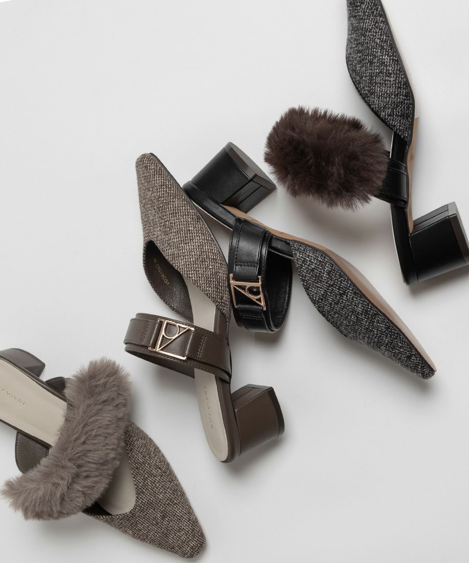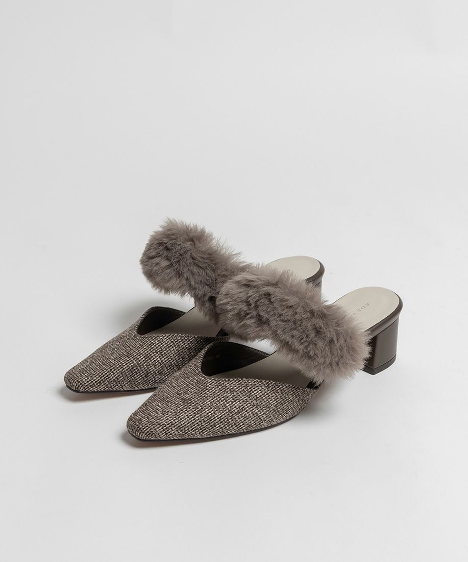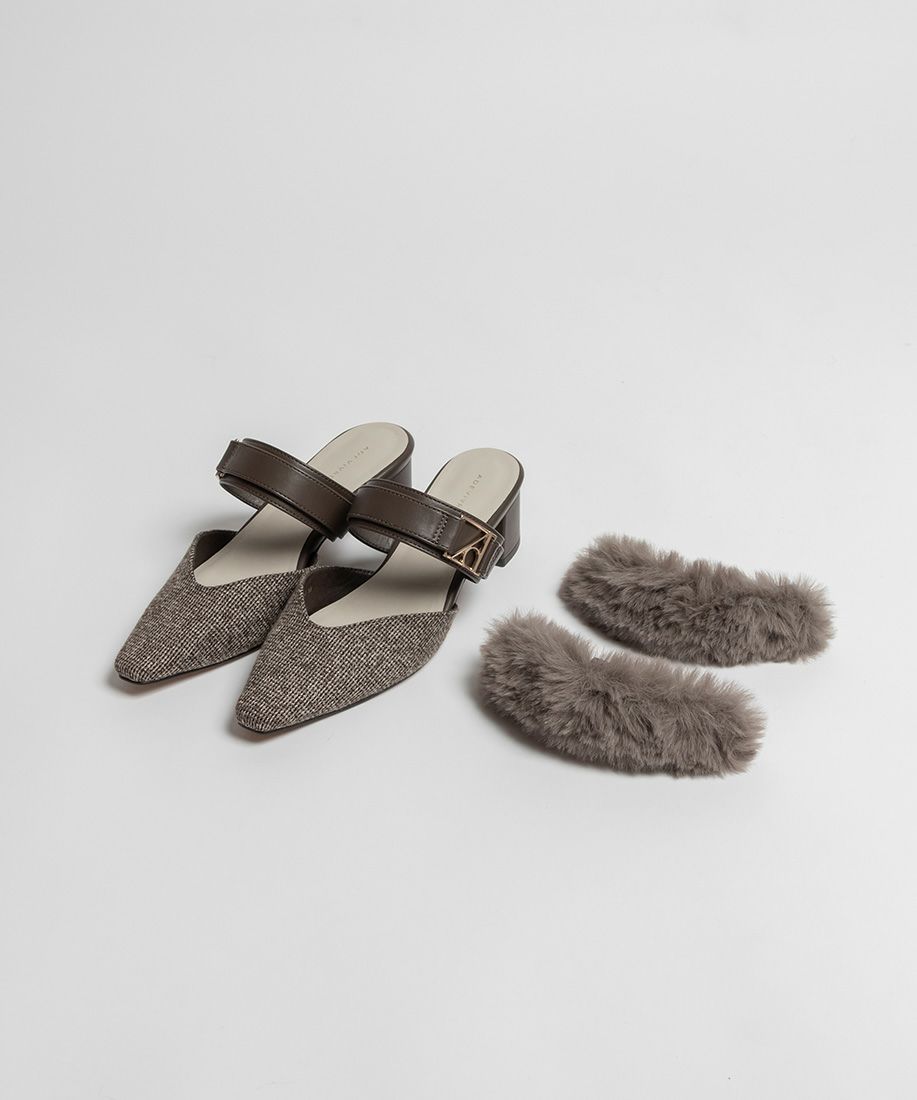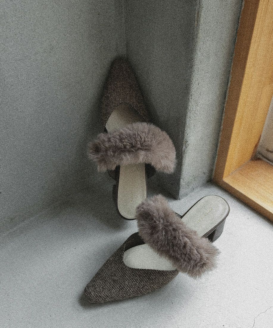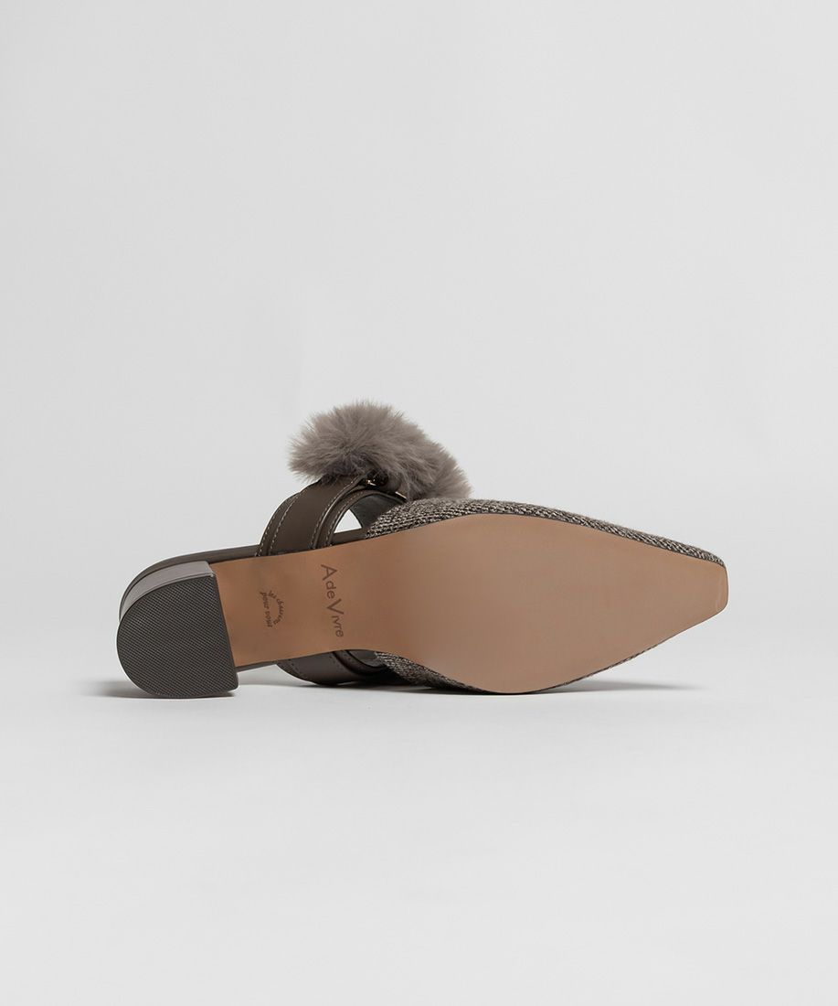 サステナブル 2WAY ファーベルトパンプスミュール