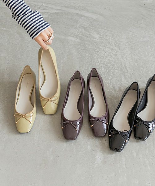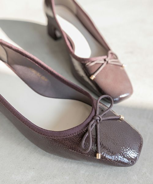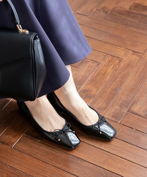 サステナブル 晴雨兼用 エナメルフラットパンプス
