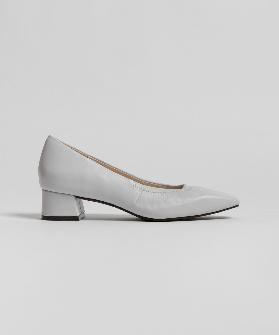 足を包み込むギャザーパンプスはカットラインを柔らかく仕立てつつ、シャーリングで適度に足にフィットします。