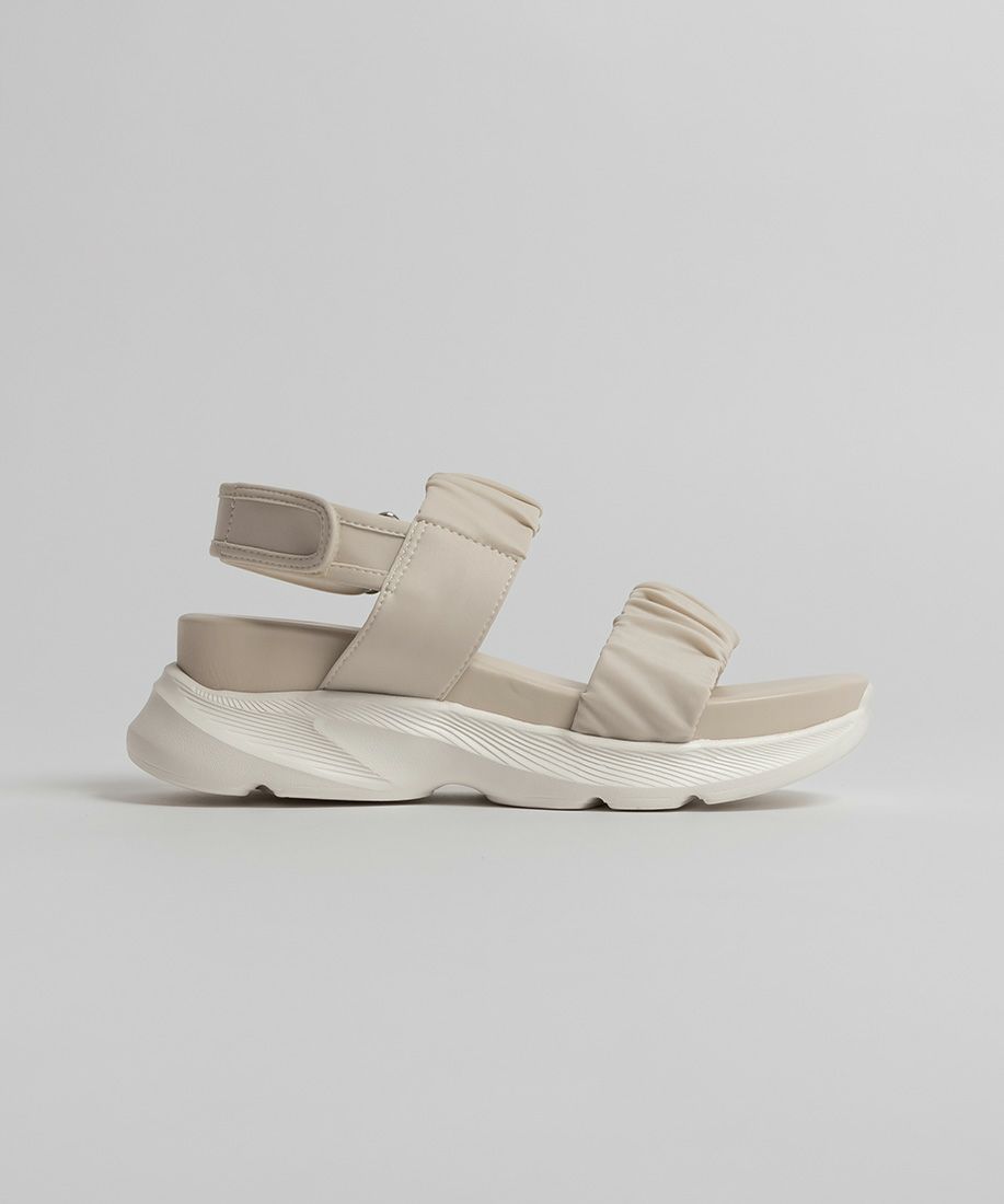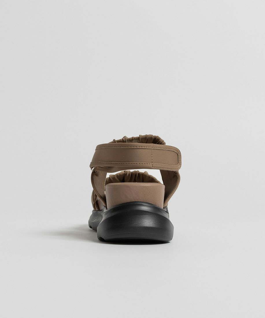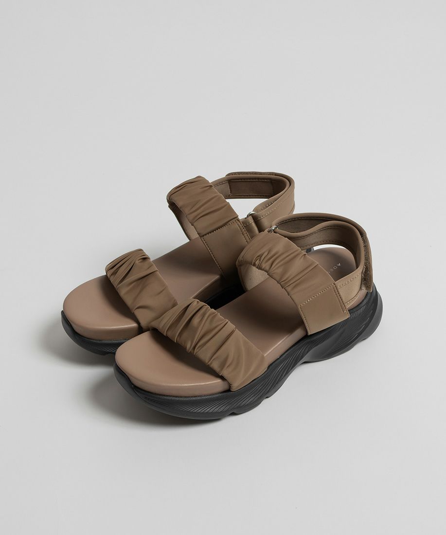 旬のギャザーデザインが目を惹く、大人カジュアルなスポーツサンダル。