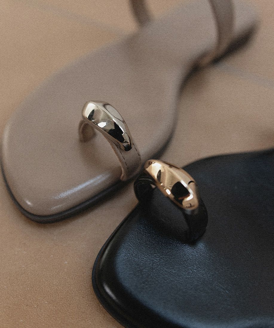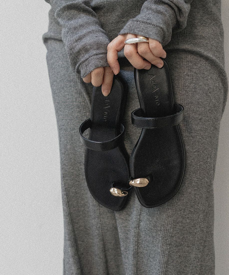 素足の季節におすすめのメタルリングサンダル。