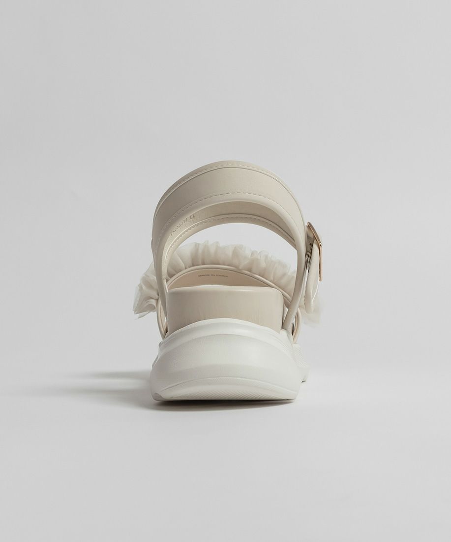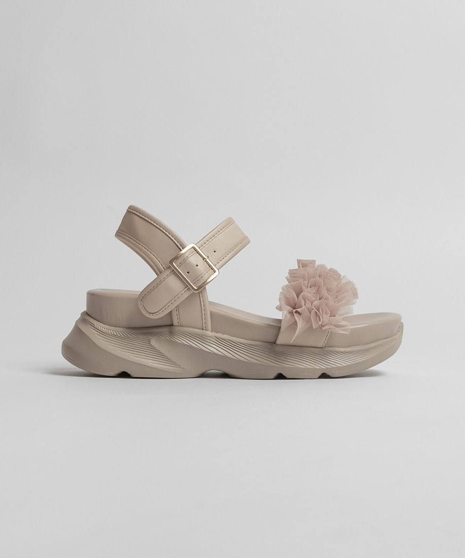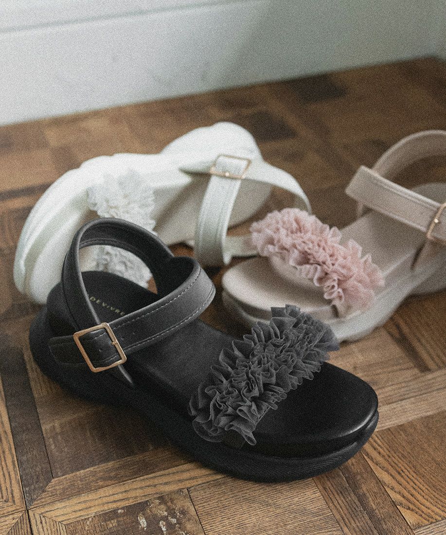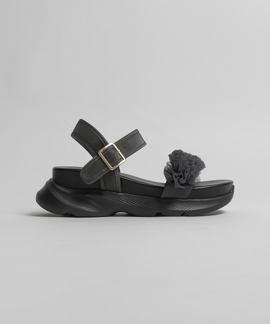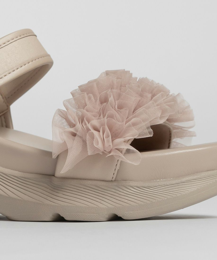 ボリュームソールにチュールフリルを合わせたトレンド感のあるスポーツサンダルです。