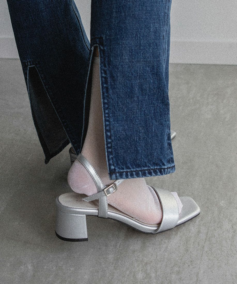 4㎝ヒールのベーシックなスクエアトゥサンダルです。