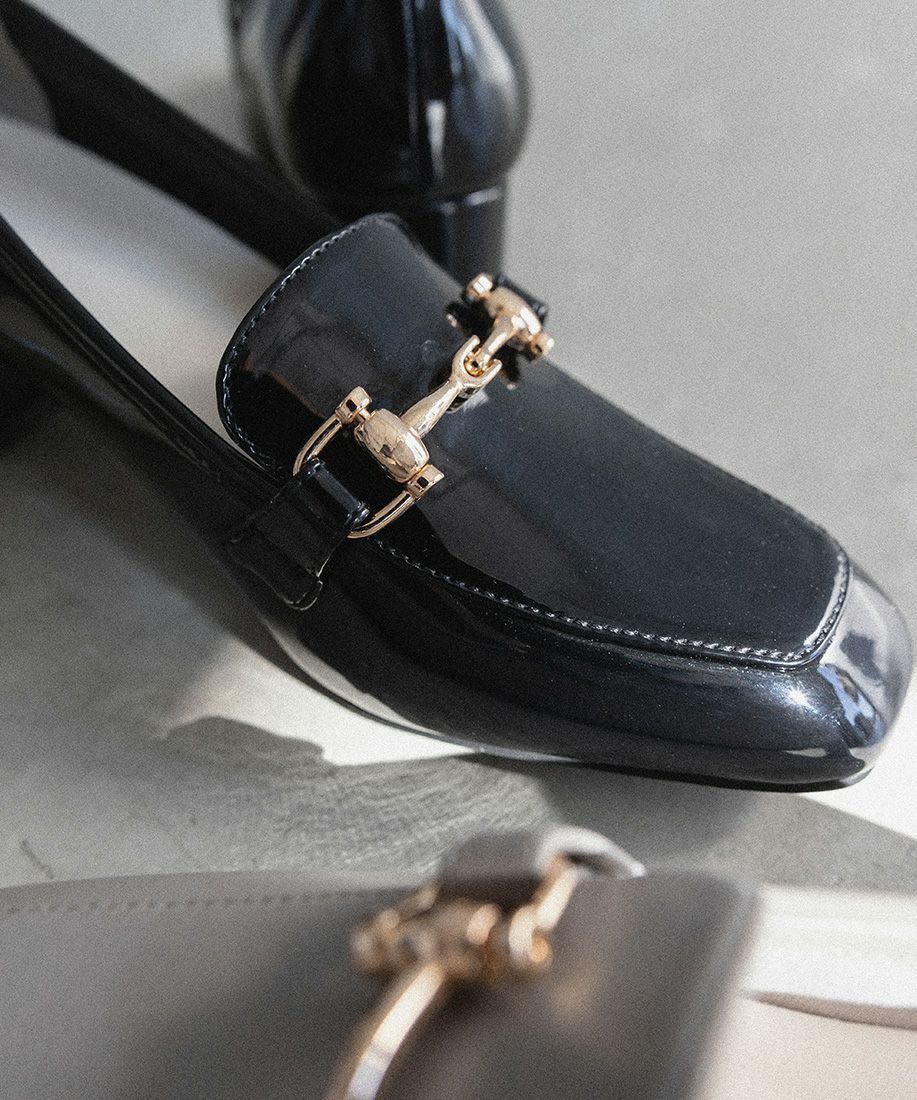 A de Vivre定番のビットローファーに4.5㎝のチャンキーヒールを合わせたヒールアップローファー。
