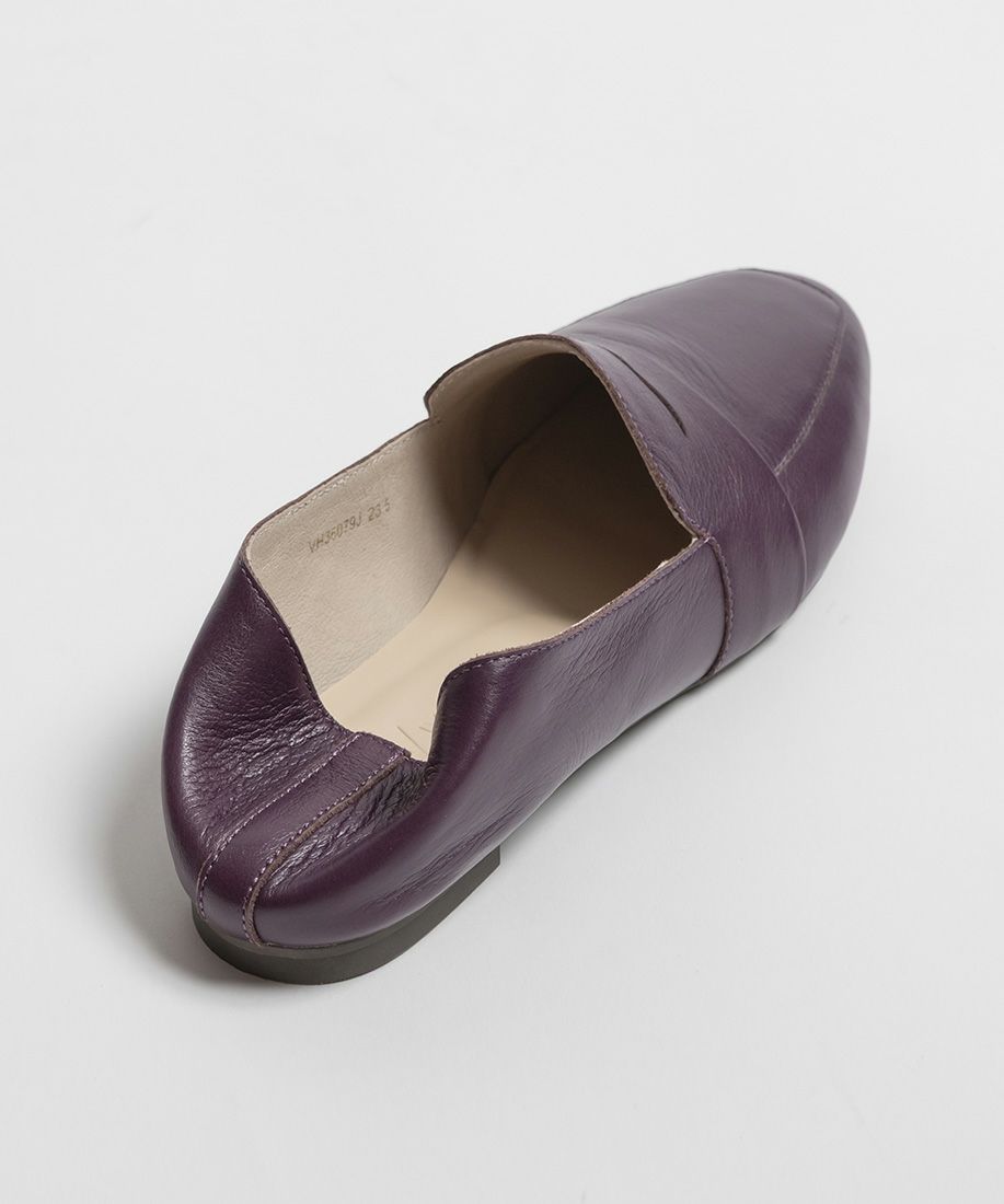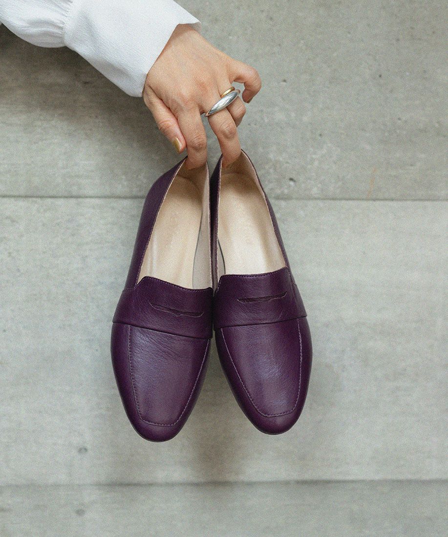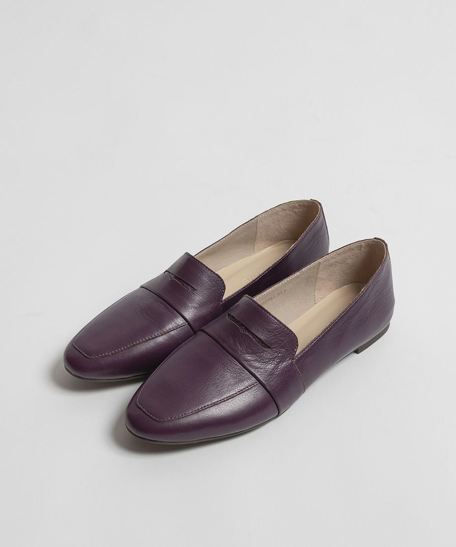 細めのラウンドトゥですっきりとしたフォルムのソフトレザーローファー。