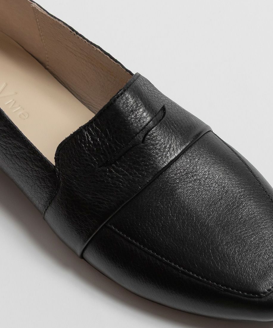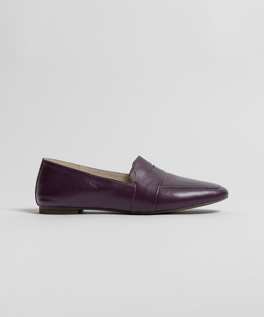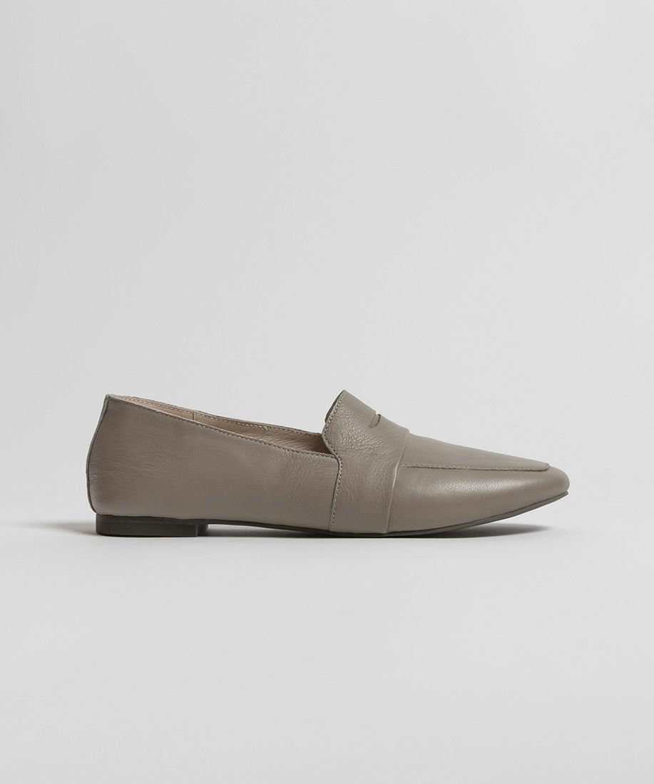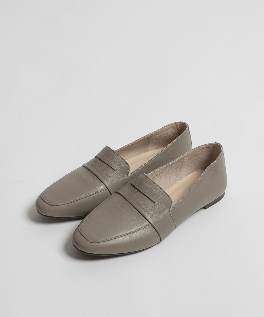 細めのラウンドトゥですっきりとしたフォルムのソフトレザーローファー。