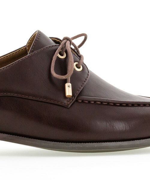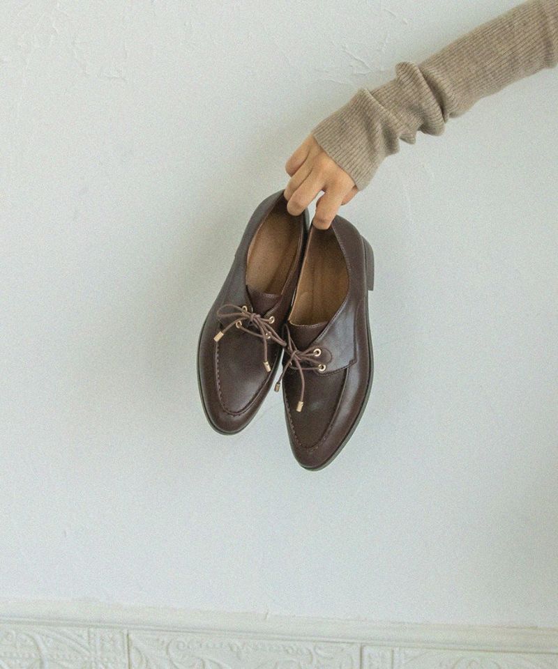 ゴールドの金具使いをアクセントにしたマニッシュなレースアップシューズ
