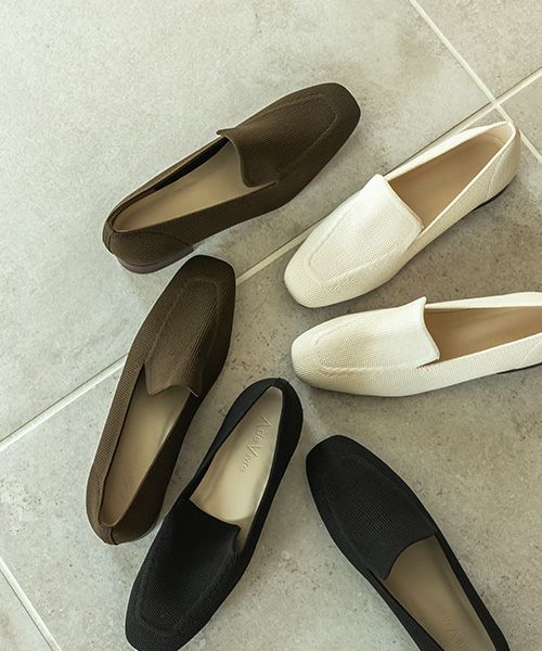 リサイクルニットを使った、メンズライクなデザインのローファーです