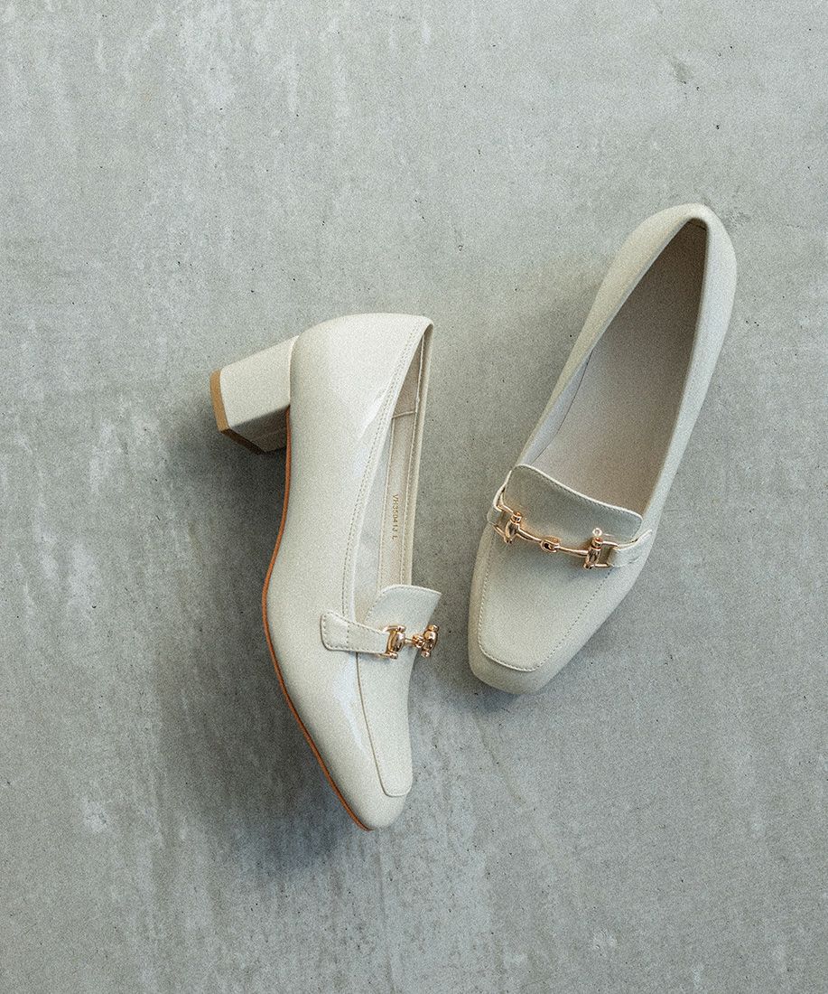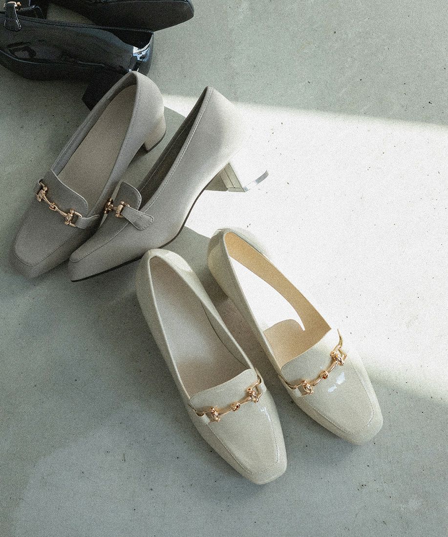 A de Vivre定番のビットローファーに4.5㎝のチャンキーヒールを合わせたヒールアップローファー。