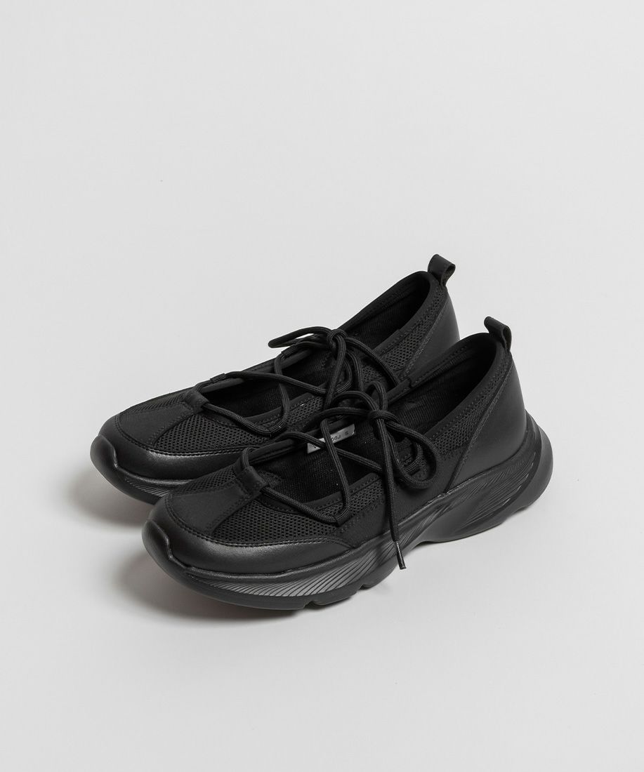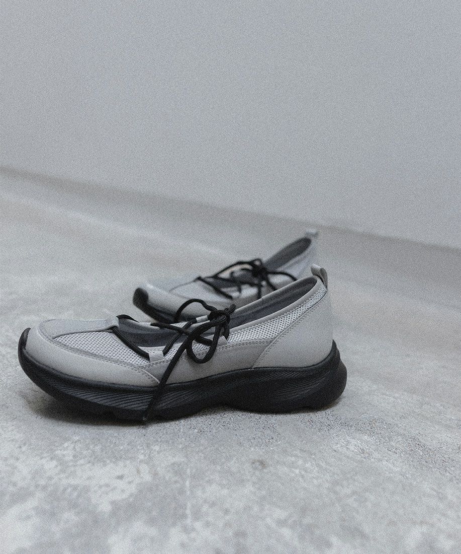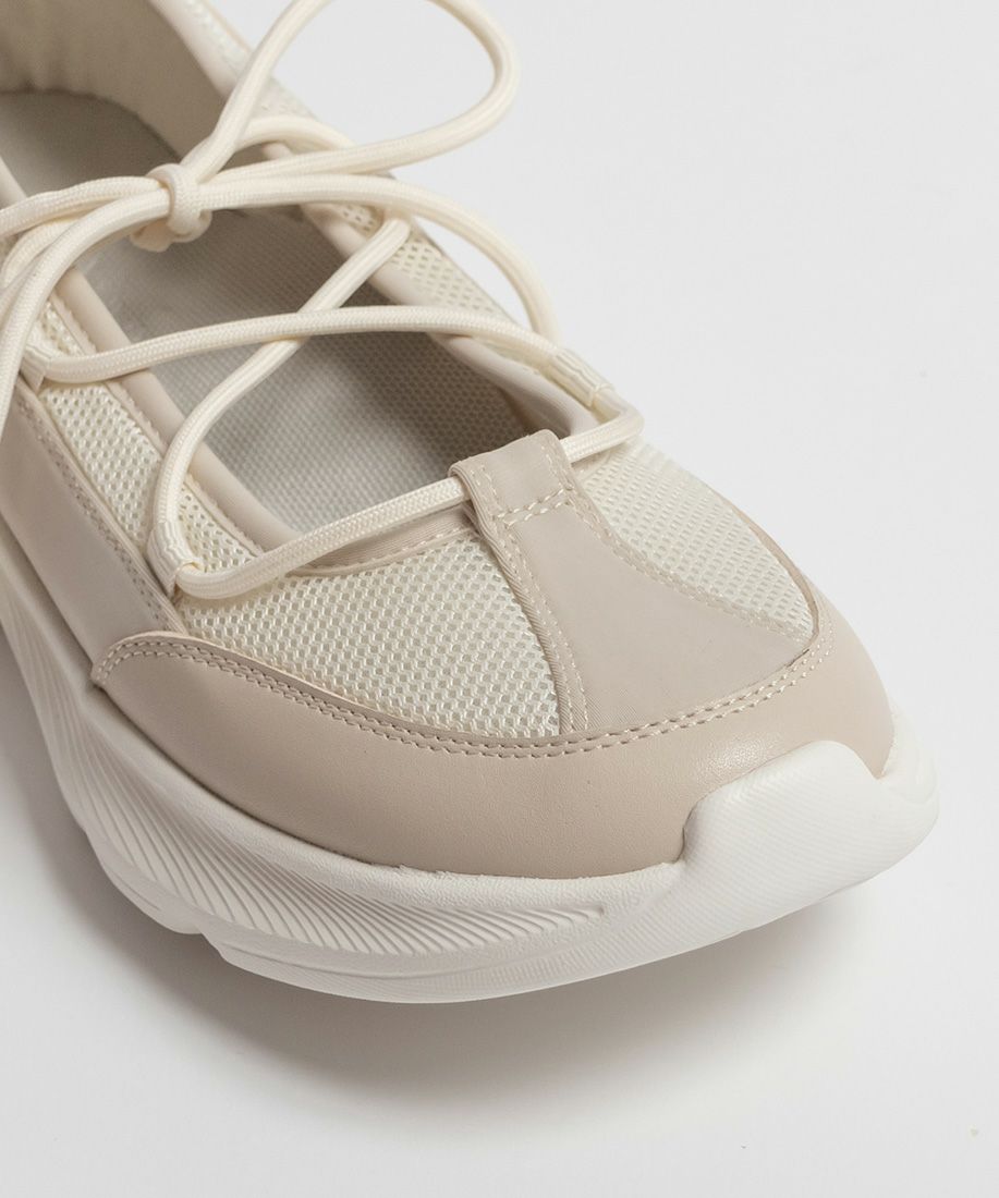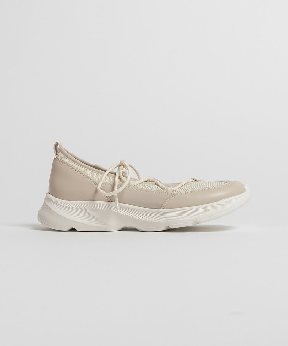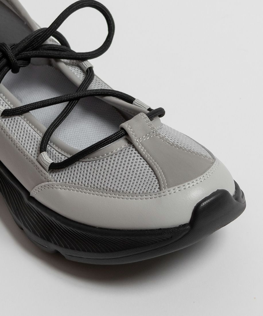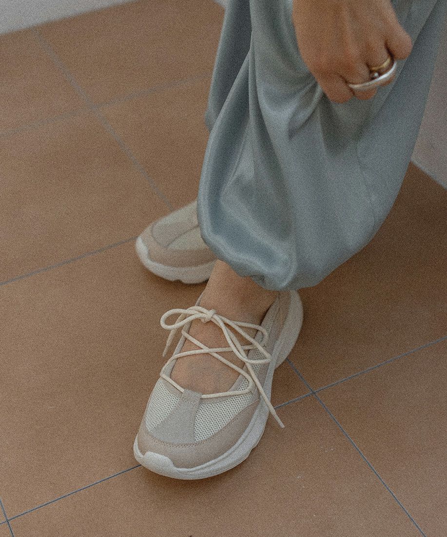 甲部分のクロスレースアップとスポーティな底がマッチした新鮮なスニーカーアイテム。