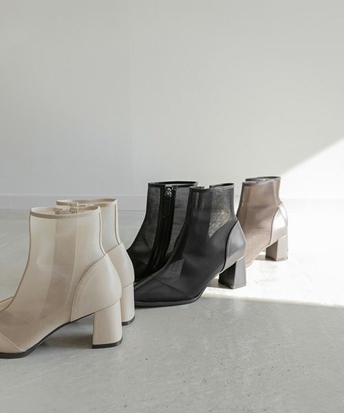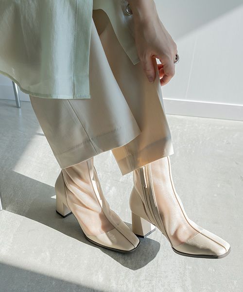 軽さを出したい春夏の足元におすすめのシアーショートブーツです。