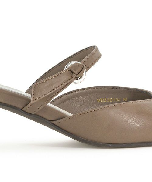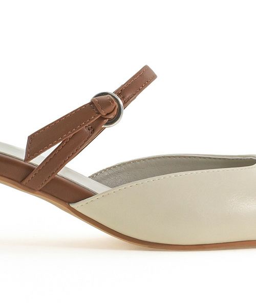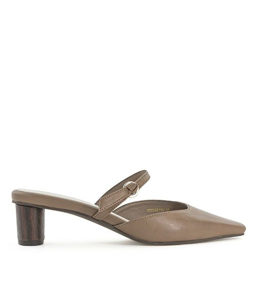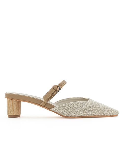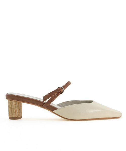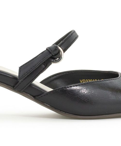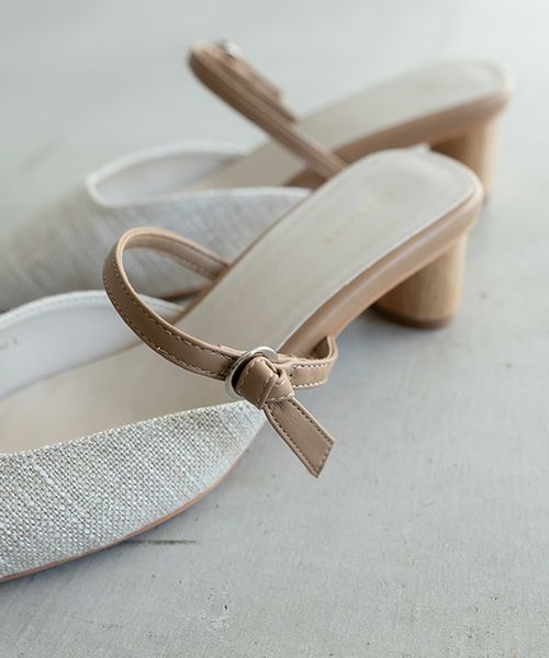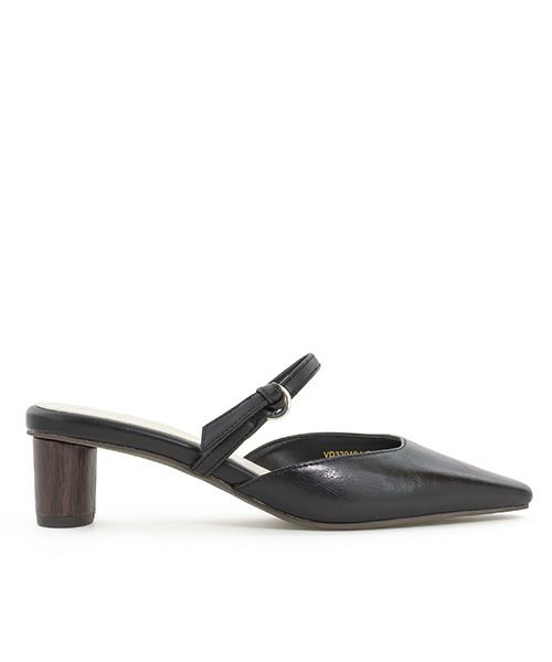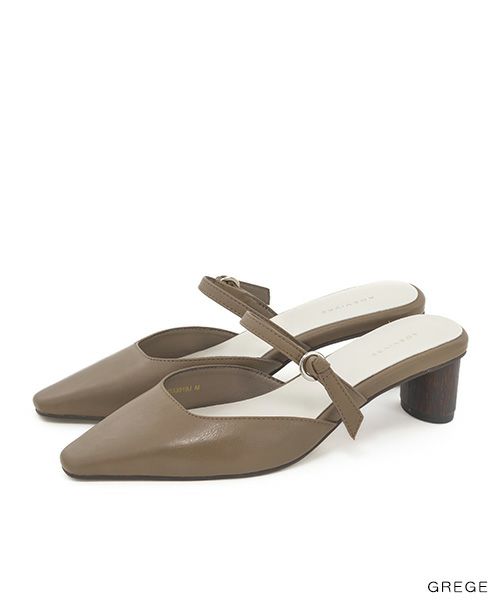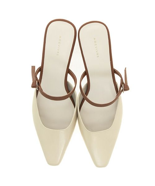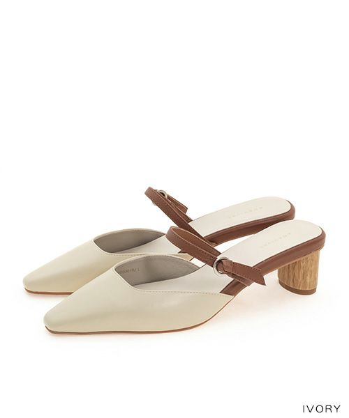 すっきりしたナロースクエアトゥと華奢なストラップがレディライクなミュールパンプスです。