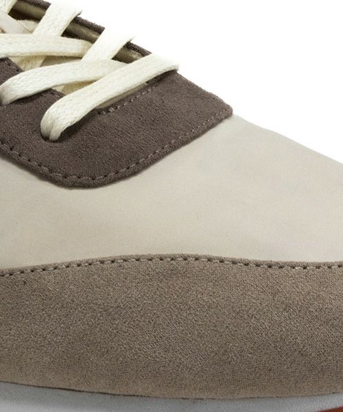 同系色の異素材コンビで、一体感がありつつメリハリを持たせた1足です