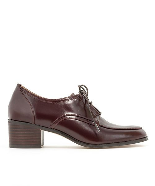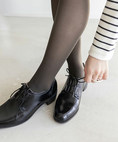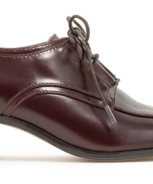 ツヤのある牛革を使用したレザーヒールアップシューズ。
