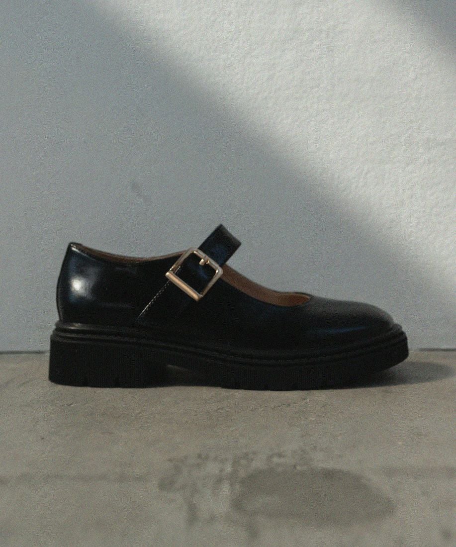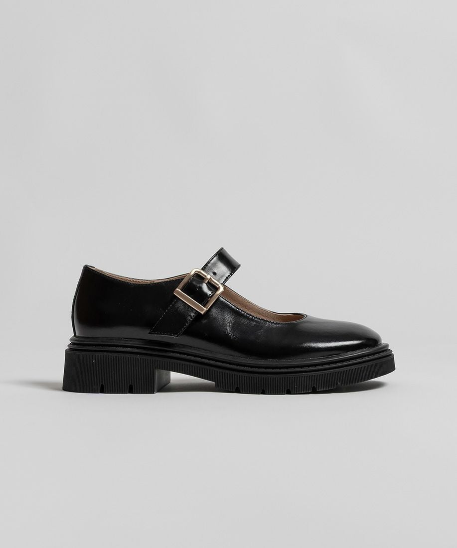 スタイルアップが叶うボリュームソールに風合い豊かな艶感のある牛革を使用したメリージェーンタイプのストラップシューズ。