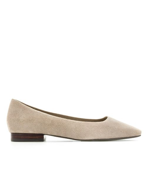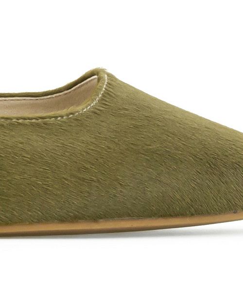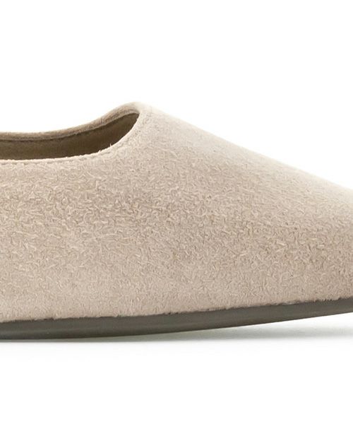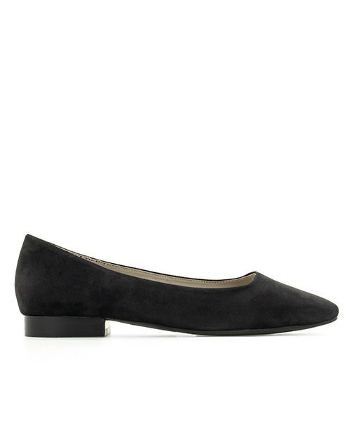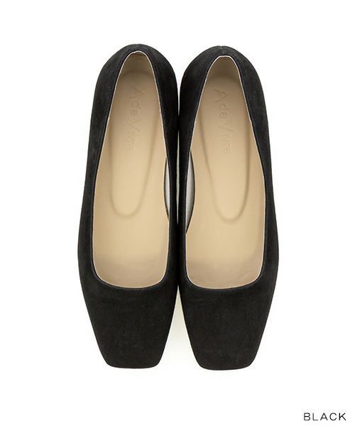 履き口、つま先をスクエアで揃えローヒールでもすっきり綺麗に履けるデザインに