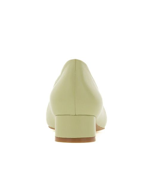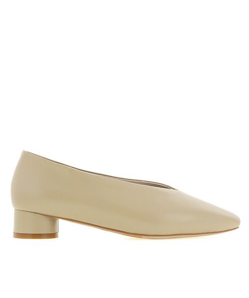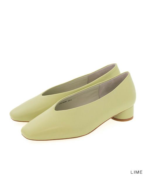 深めのカットラインとラウンドヒールのさりげないデザインとアクセントカラーが魅力。