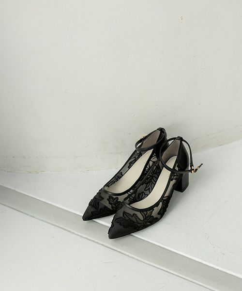 リーフ柄をもモチーフにした、ほど良い透け感がポイントのシアーパンプス