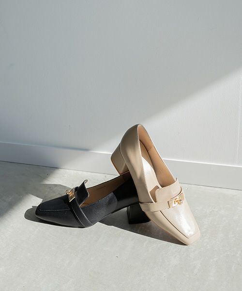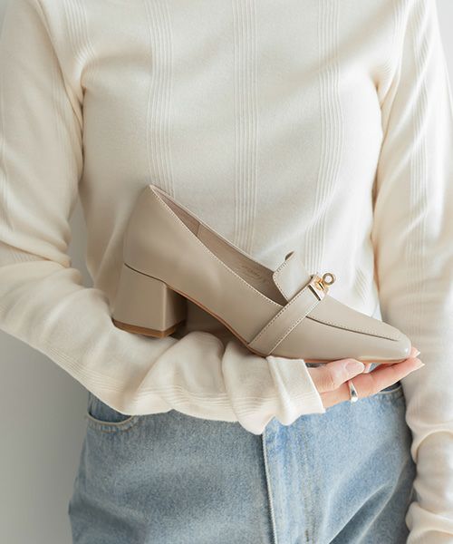 5cmのフレアヒールを合わせたローファーデザインが上品でレディライクな印象に仕上げました。