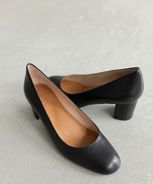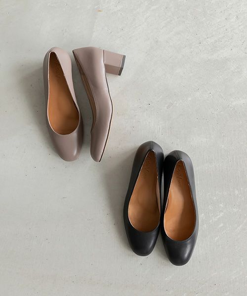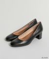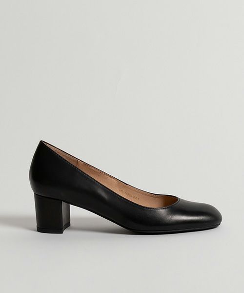 甘さを抑えたラウンドトゥの木型にこだわったレザーパンプス。