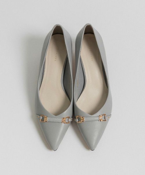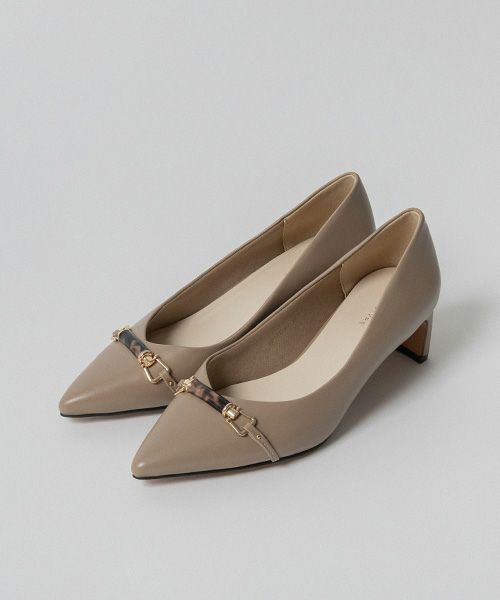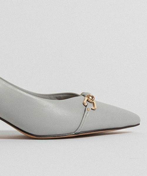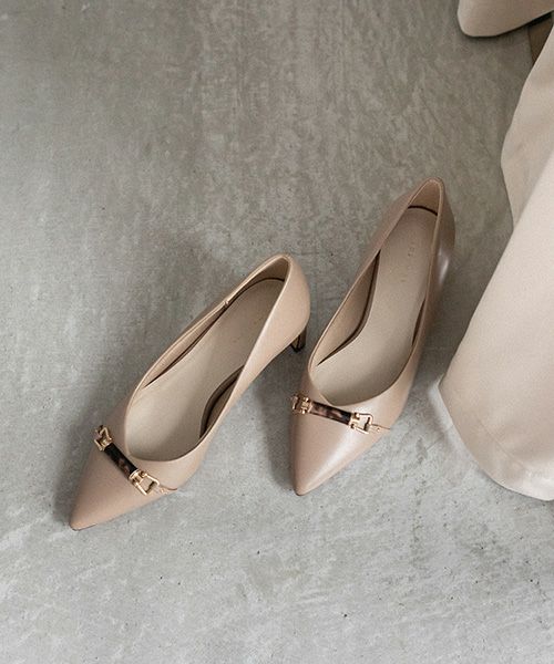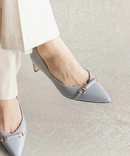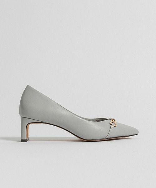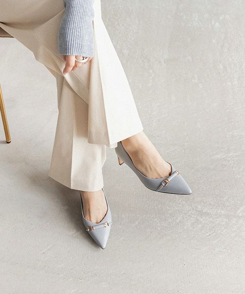 すっきりとしたポインテッドトゥに華奢なナロービットを合わせたパンプスです。