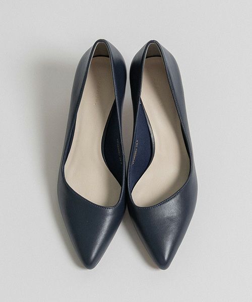 履き口はアシンメトリーなカッティングでワイズの広さを目立ちにくく足をきれいに見せます。