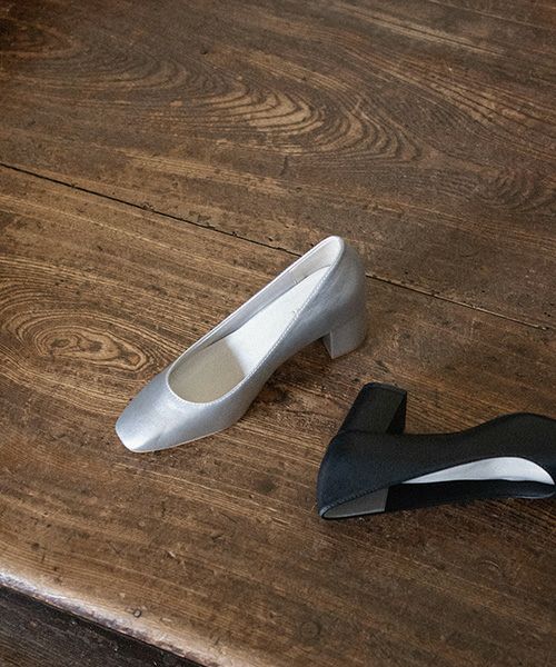 薄めのトゥ先にすっきりとしたソフトスクエアトゥで女性らしく、シンプルな中にも上品な雰囲気の晴雨兼用パンプスです。