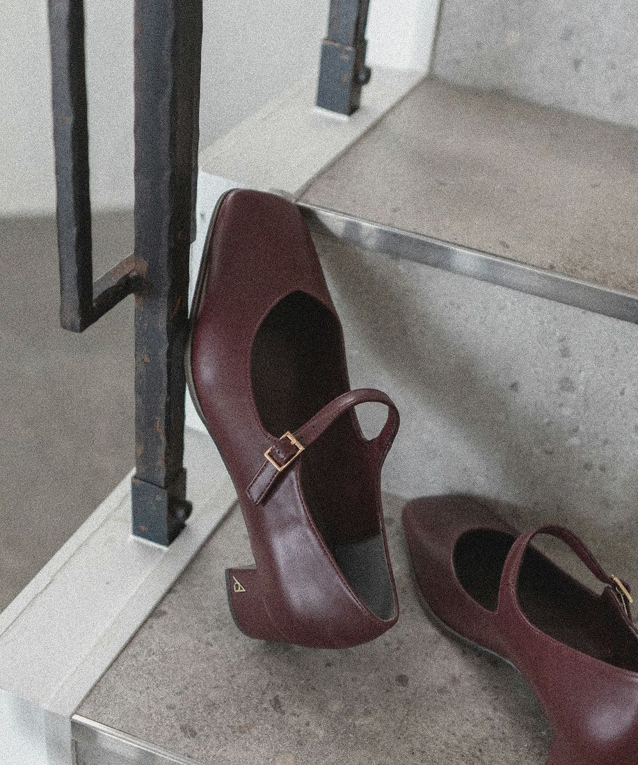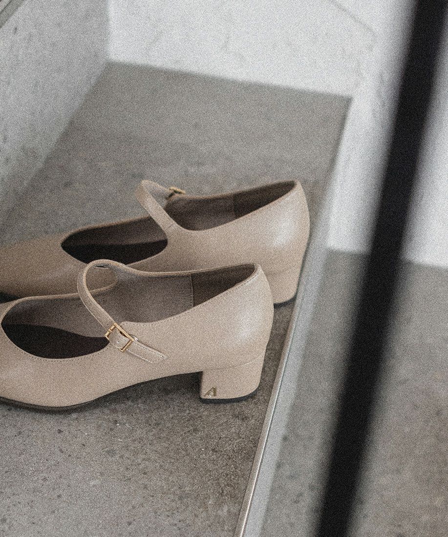人気のVカットパンプスにストラップを追加し、メリージェーンデザインにプラッシュアップ。