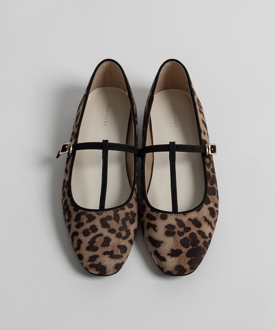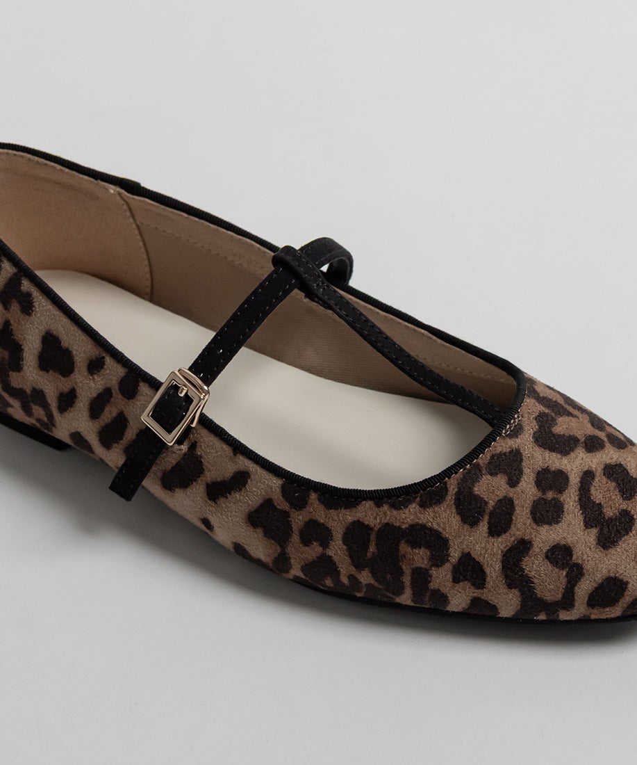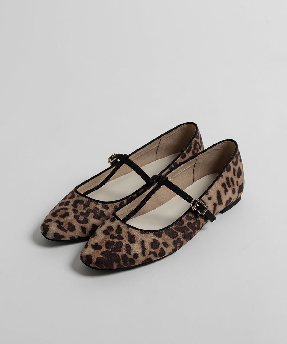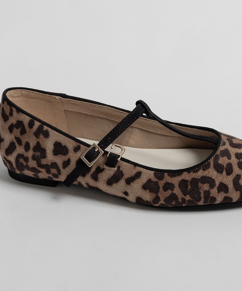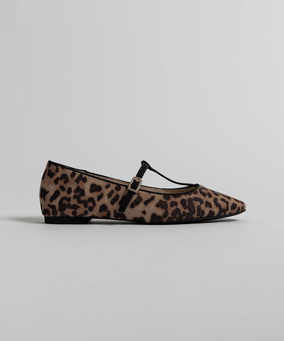 バレエシューズのような軽快な履き心地に、Tストラップでクラシックな印象を加えた一足。