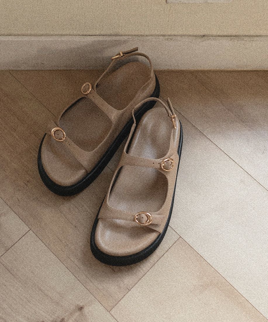 ボリューム感のあるソールが特徴のフットベッドサンダル。
