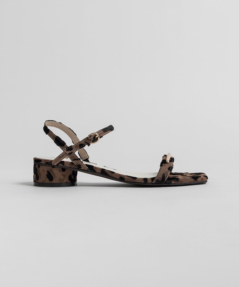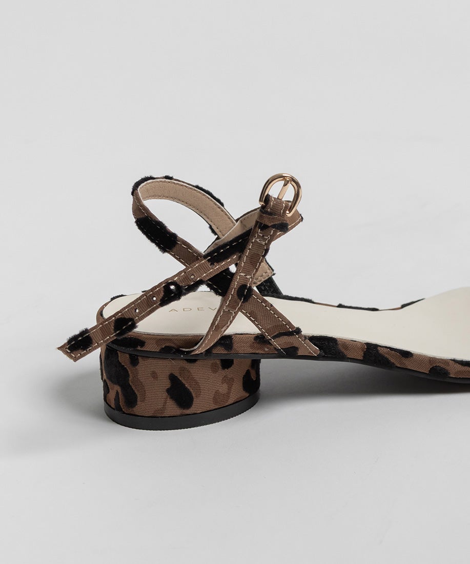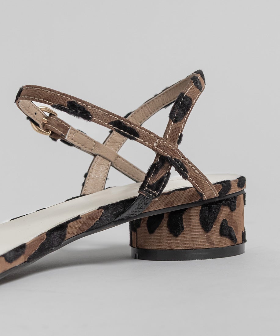 レオパードのアッパーには起毛感のあるレオパード柄の生地を使用しています。