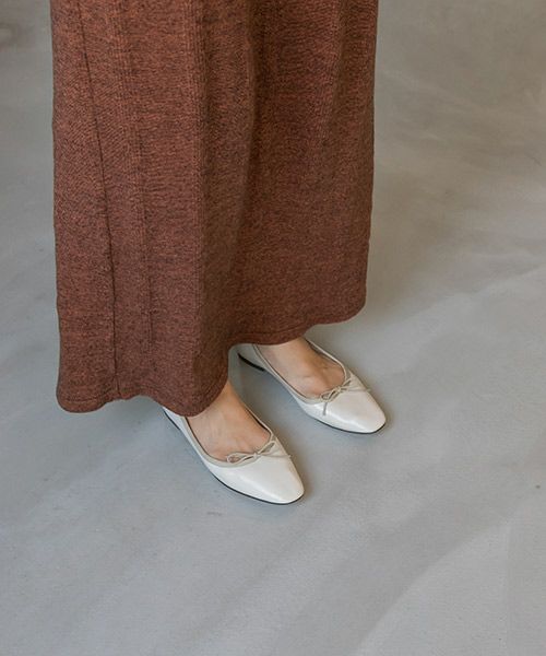 【70%OFF】スクエアトゥレザーフラットパンプス