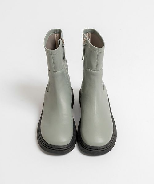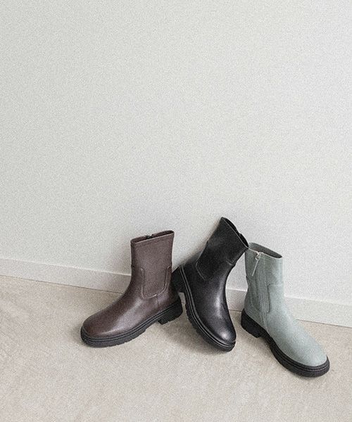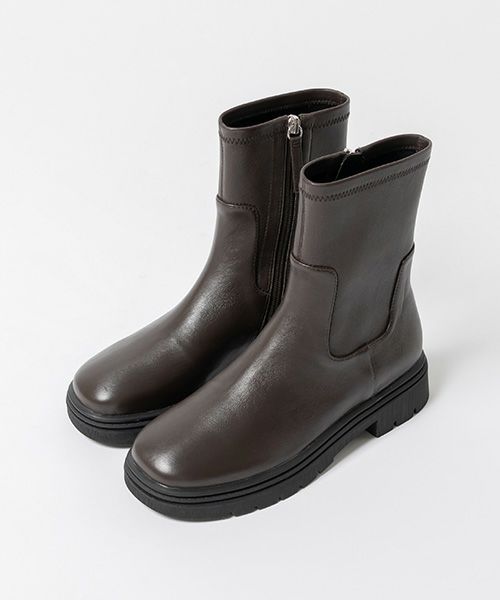 伸縮性のあるストレッチレザーを使用したショートブーツです。