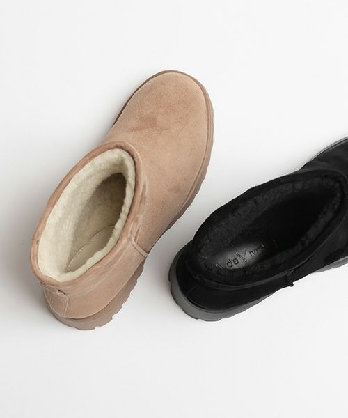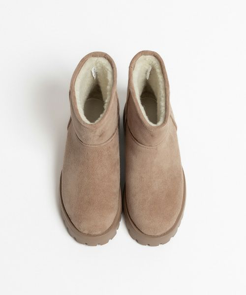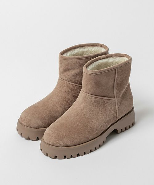 アッパーには羊革スエード、ライニングは一部リアルムートンで暖かく、軽量トラックソールで履き心地も快適。