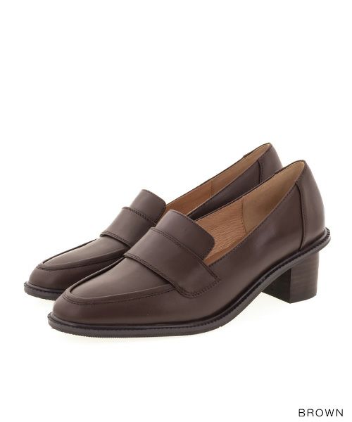 マニッシュなローファーデザインですが、5㎝ヒールでスタイルアップも叶う1足です