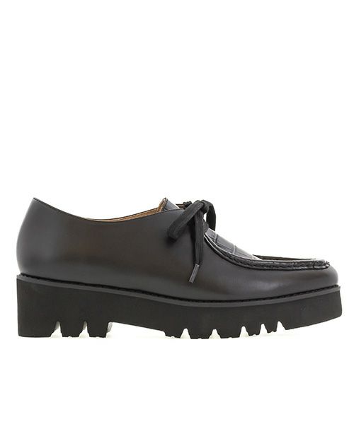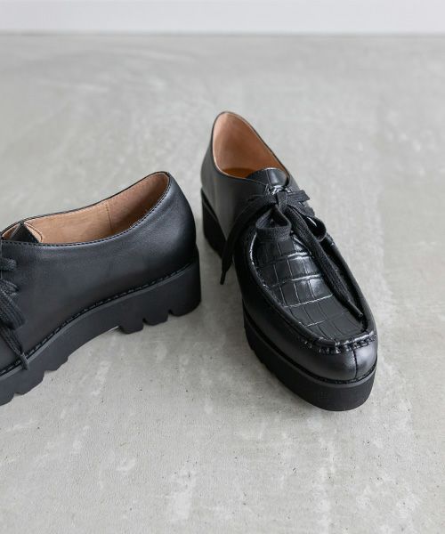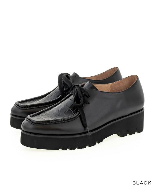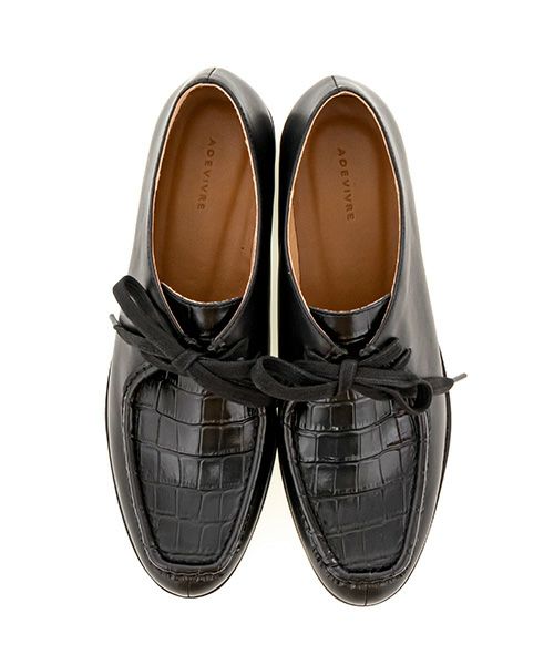ブラックの甲部分は、クロコ柄の型押し素材を使用しています