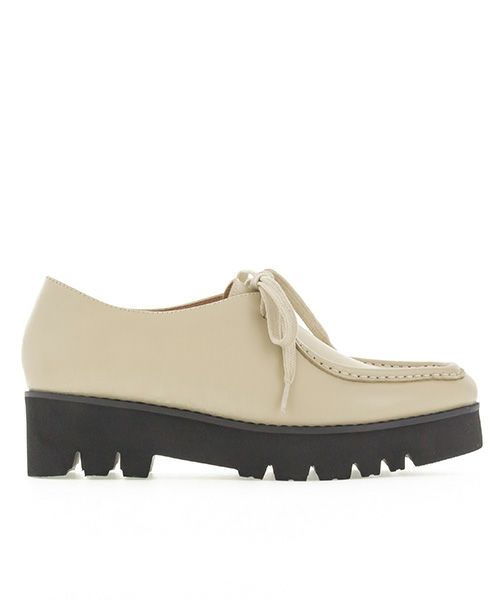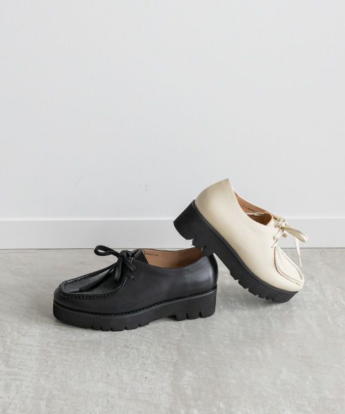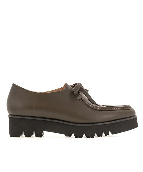 カジュアルシューズの定番チロリアンシューズをスクエアトゥと艶のある牛革を使用し上品な印象にアップデート