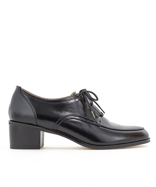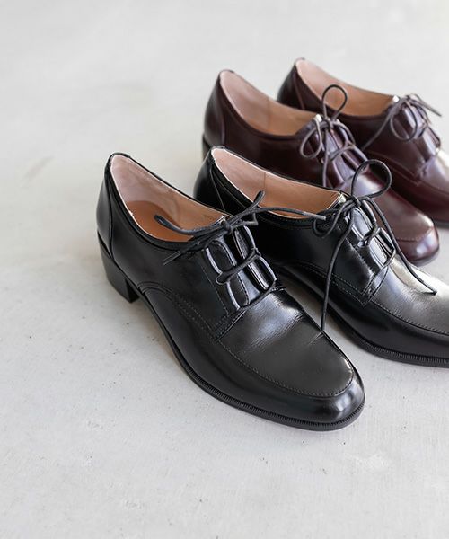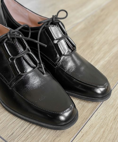 ツヤのある牛革を使用したレザーヒールアップシューズ。