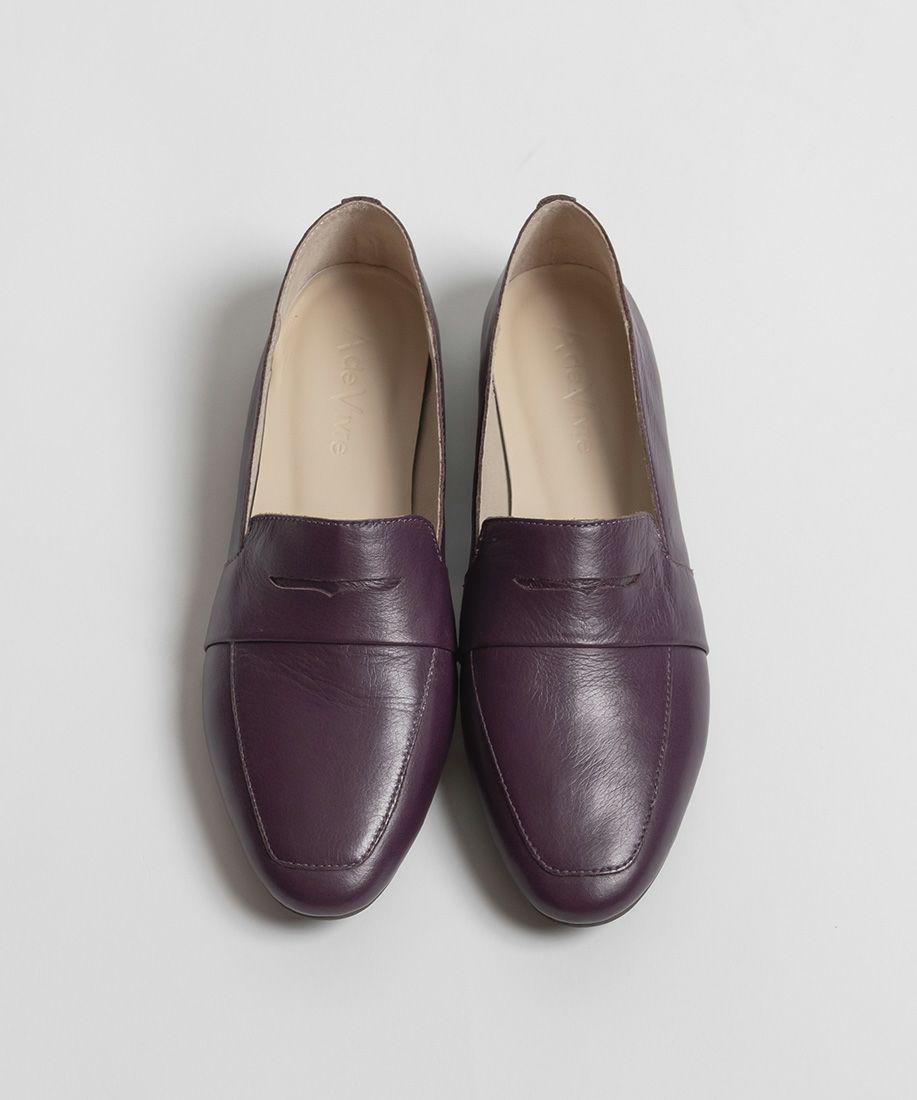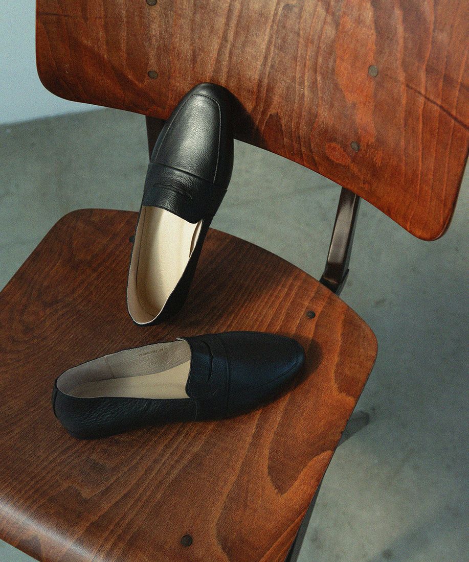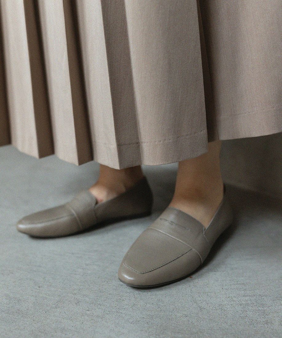 細めのラウンドトゥですっきりとしたフォルムのソフトレザーローファー。