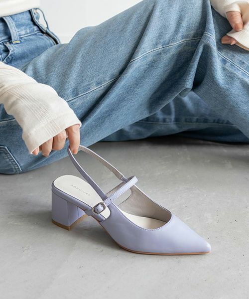 【50%OFF】レザー ナローストラップポインテッドパンプス